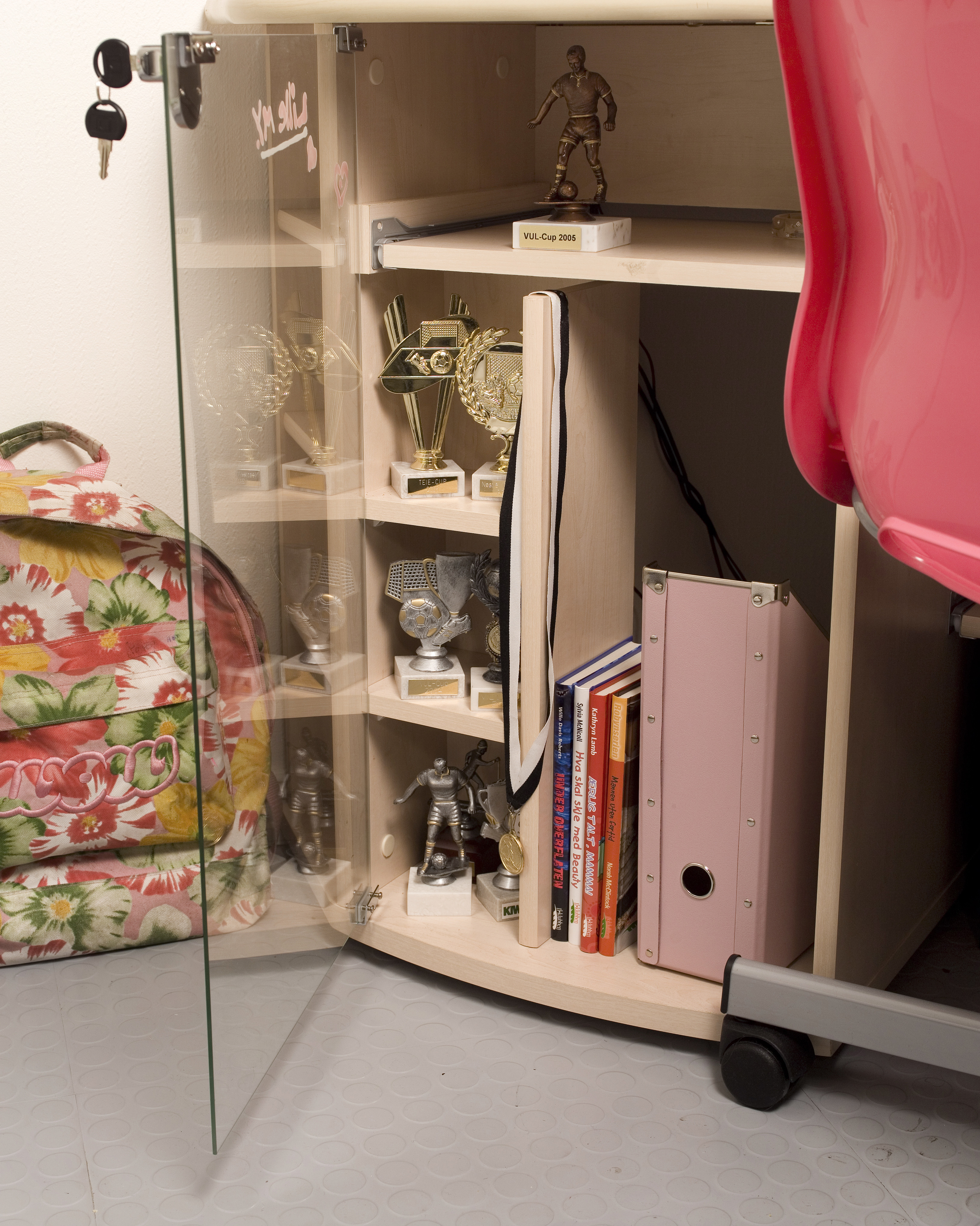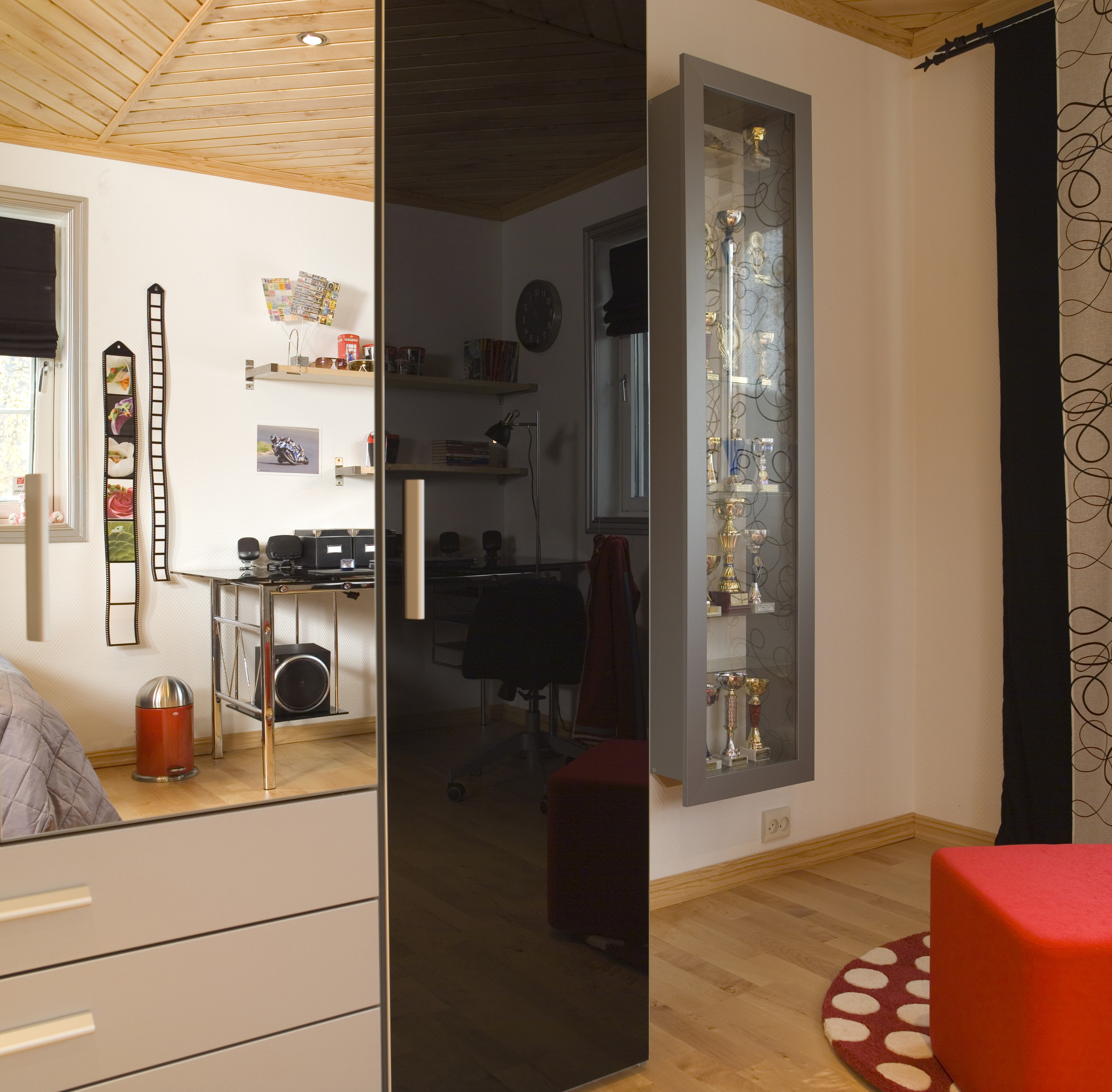 - Det er jo noe upraktisk med blanke flater der alt synes, forteller mor. Men hun er imponert over sønnens evne til å holde rommet pent og ryddig. Han har en egen sprayflaske med glassrens og sørger jevnlig for å fjerne fingermerker og støv. Ikke verst!