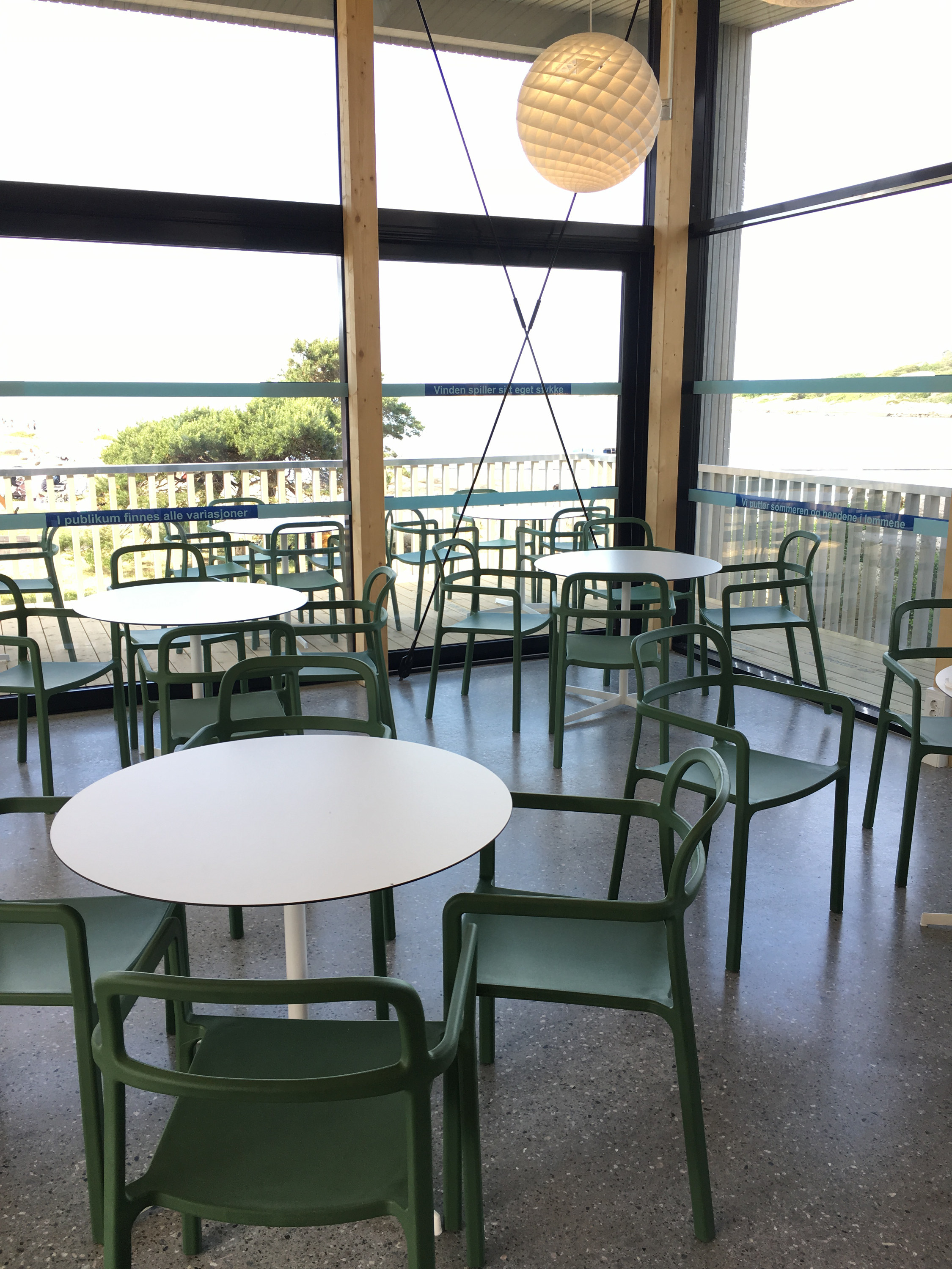 – I kaféen er det brukt mye tre inne i likhet med utsiden, sier Spangen.