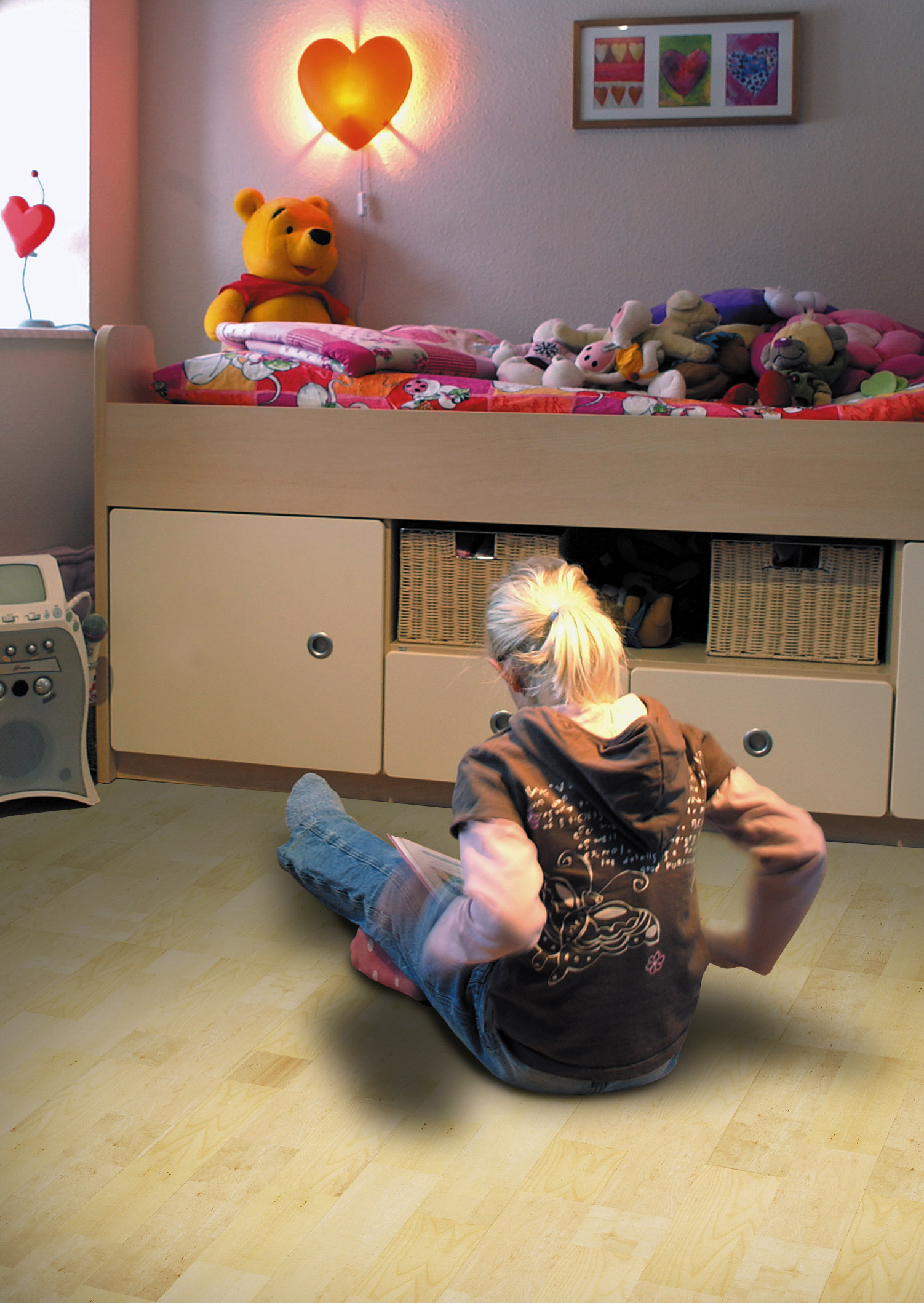Det aller enkleste er en gulvtype som kan legges på flisene uten å måtte rette ut gulvet først. Det finnes ikke mange slike gulv, men du har et par alternativer. Kork er en god løsning, som også er godt egnet til barnerom, da det føles mykt og lunt.