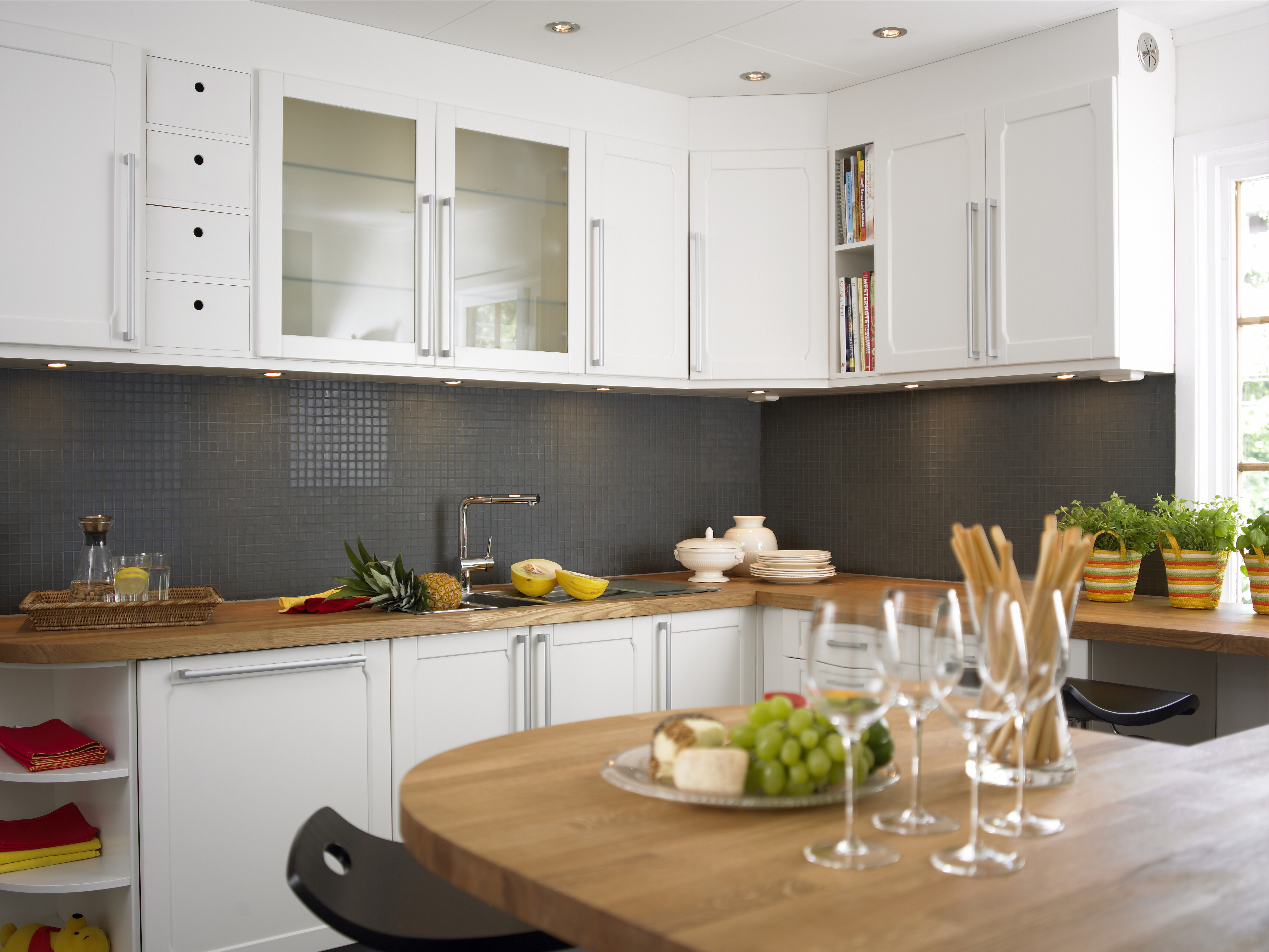 Under overskapene ble det montert en solid plate der downlights ble felt inn
