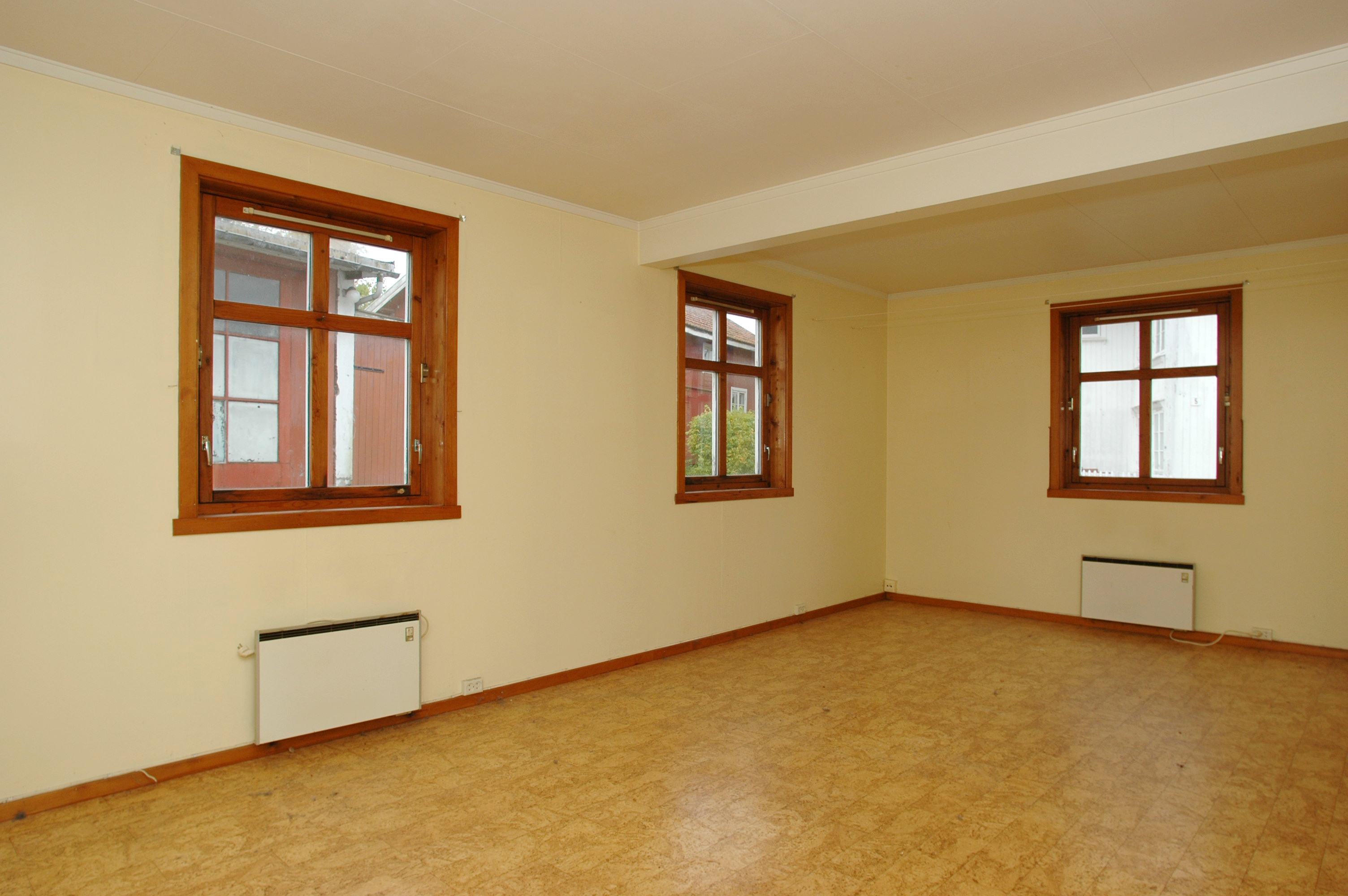 Alle vinduer ble hvite, ytterdøren fikk en sterk gulfarge. Det er lagt laminat på alle gulv, type hvitbeiset eik. Det lyse gulvet øker romfølelsen. De fleste vegger ble malt hvite, men stuens fondvegg har fått en tapet i sort med sølvprikker. Det gir en tøff virkning, og gjør sofakroken mer intim.