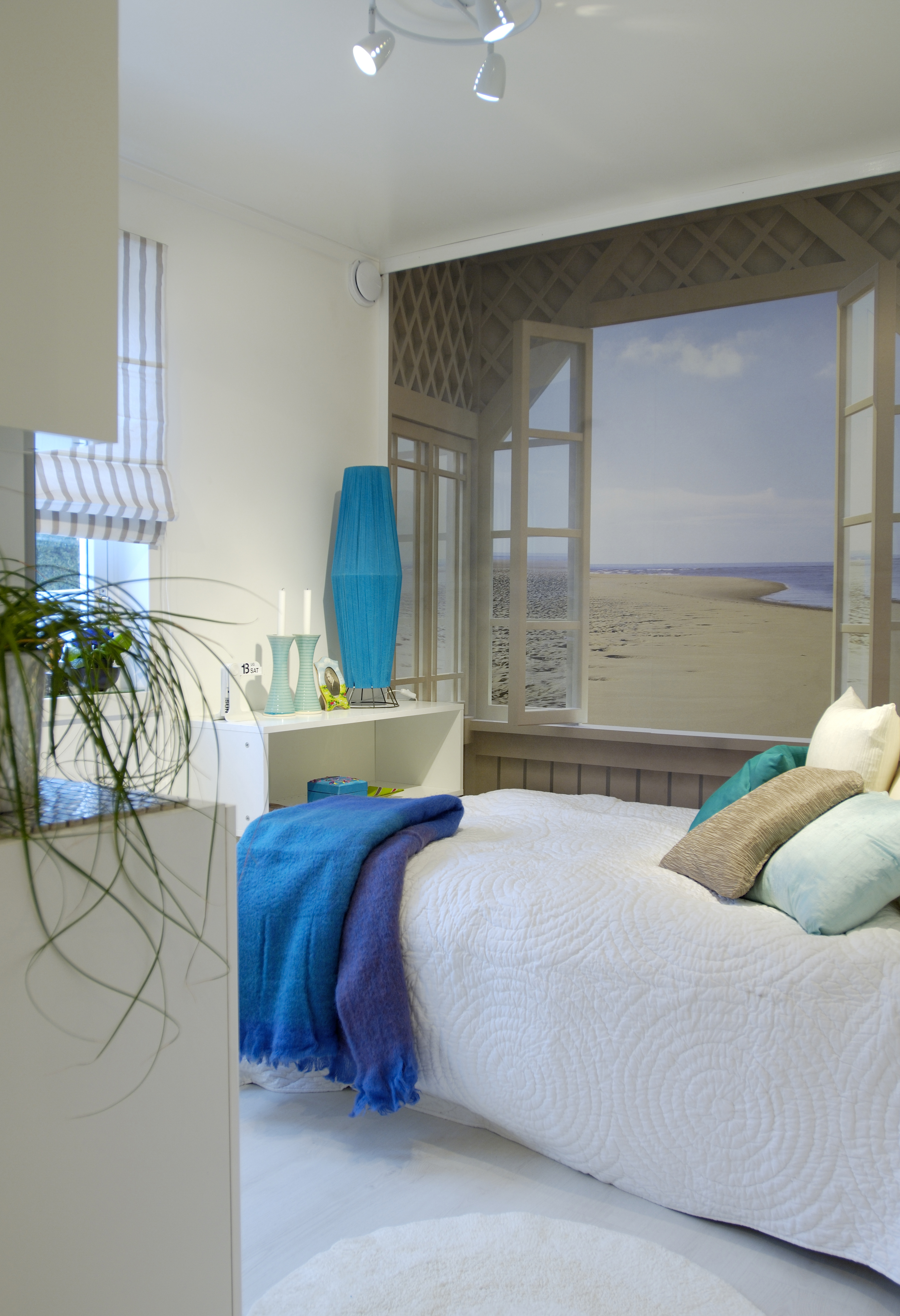 Det gamle, trange kjøkkenet er forvandlet til et rom å drømme seg bort i, et rom med utsikt! Fototapet lurer ikke bare øyet - vi føler virkelig at vi har en utsikt. Sengen som er 120 cm bred.