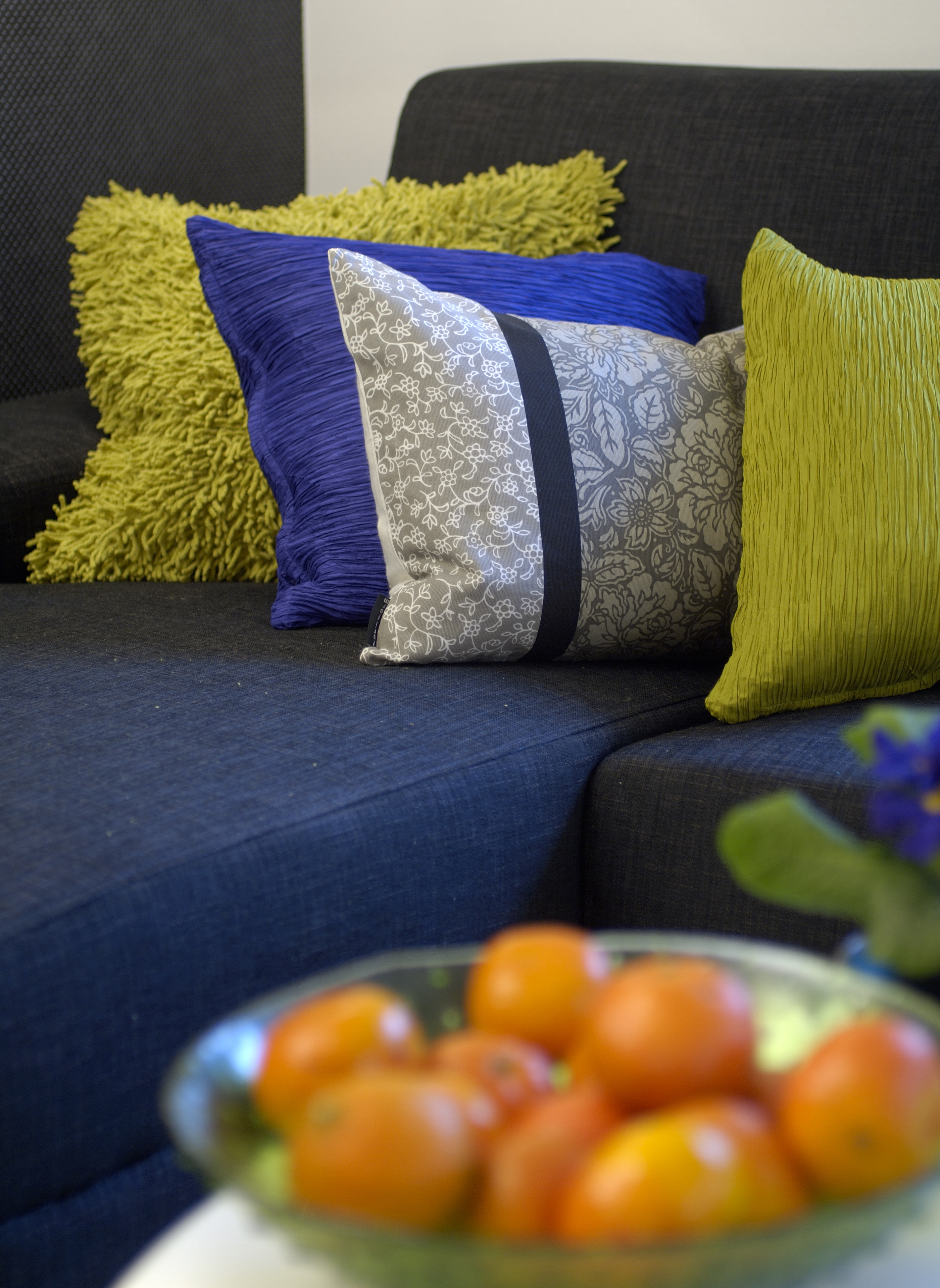 For å få leiligheten til å virke størst mulig var det viktig med et lyst og sammenhengende gulv, og lyse flater på veggene. Men likevel ikke bare nøytrale hvite flater.