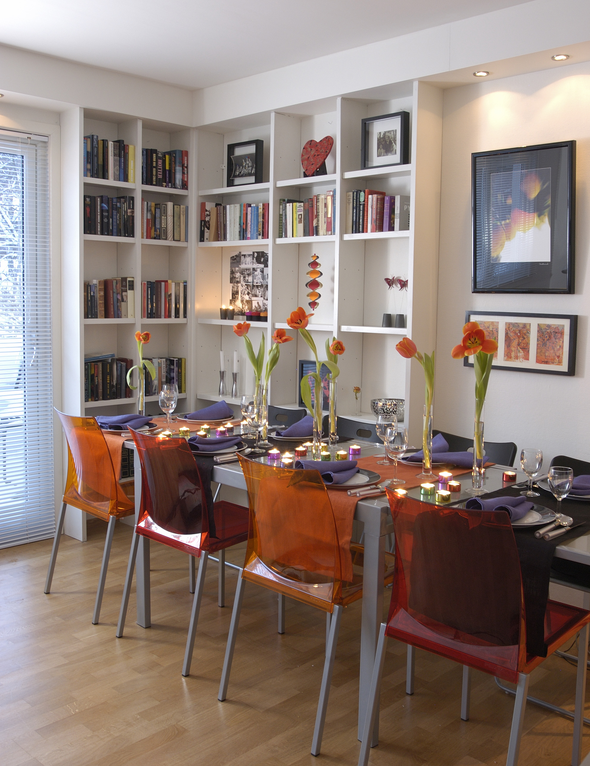 Leiligheten har i utgangspunktet en vinkelstue og ett soverom i tillegg til kjøkken og bad. Siden to studenter skulle dele, var det nødvendig å gjøre om spisekroken til et soverom. Dessuten var det helt nødvendig at Tobiassen selv hadde en sengeplass som alltid var klar, selv om begge soverommene skulle være opptatt. Det var derfor nødvendig å lage en sengeplass i stuen.