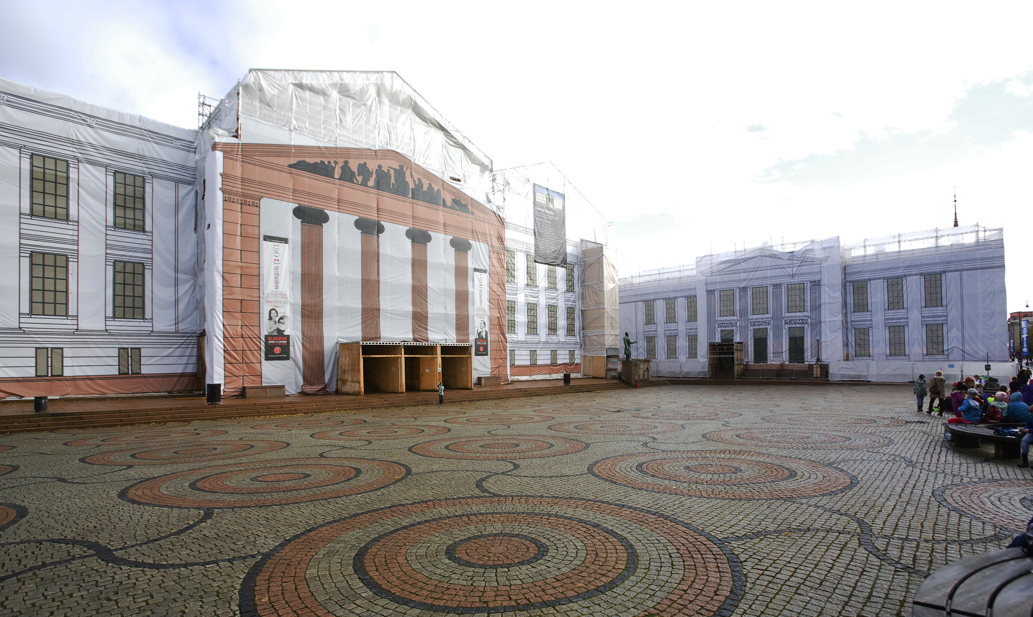 Fasadearbeidet er delt mellom to aktører – Malercompagniet Oslo AS rehabiliterer Domus Biblioteca og Domus Academica, mens Thorendahl AS er utførende på Domus Media. De vant begge den offentlige anbudskonkurransen i regi av Statsbygg. Rådgivende ingeniører har laget selve beskrivelsen.