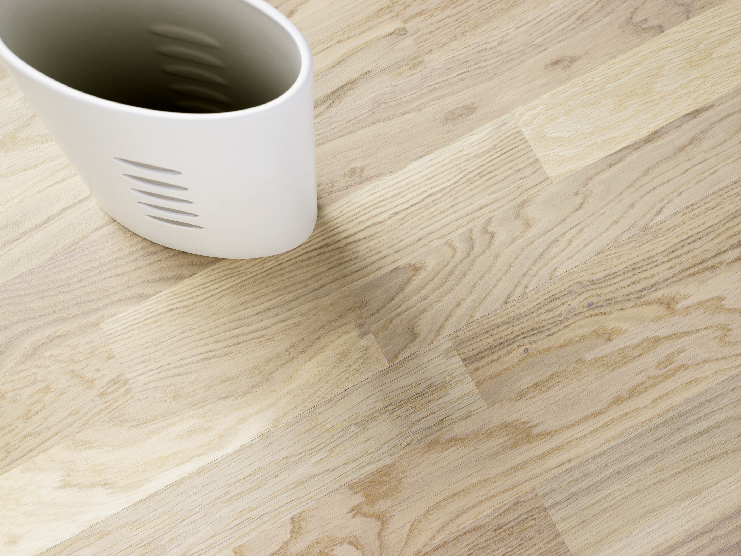 - Hvit naturmatt - lakkert med hvitt pigment (igjen et oljet utseende).Hvitlaseringen forsvinner ved sliping og gulvet vil trenge ny lansering før lakkering.