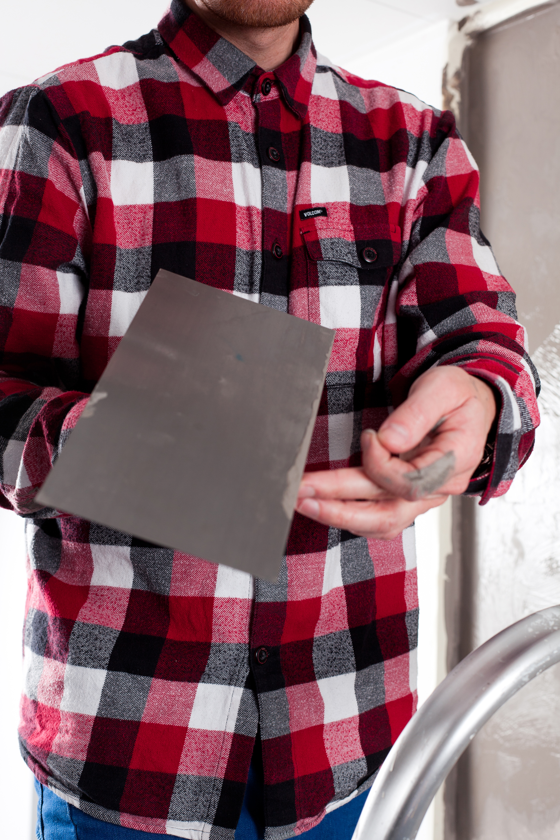 Det kan være en fordel å bøye opp hjørnene på sparkelspaden med en tang, slik at du unngår at den lager for skarpe kanter i malingen.