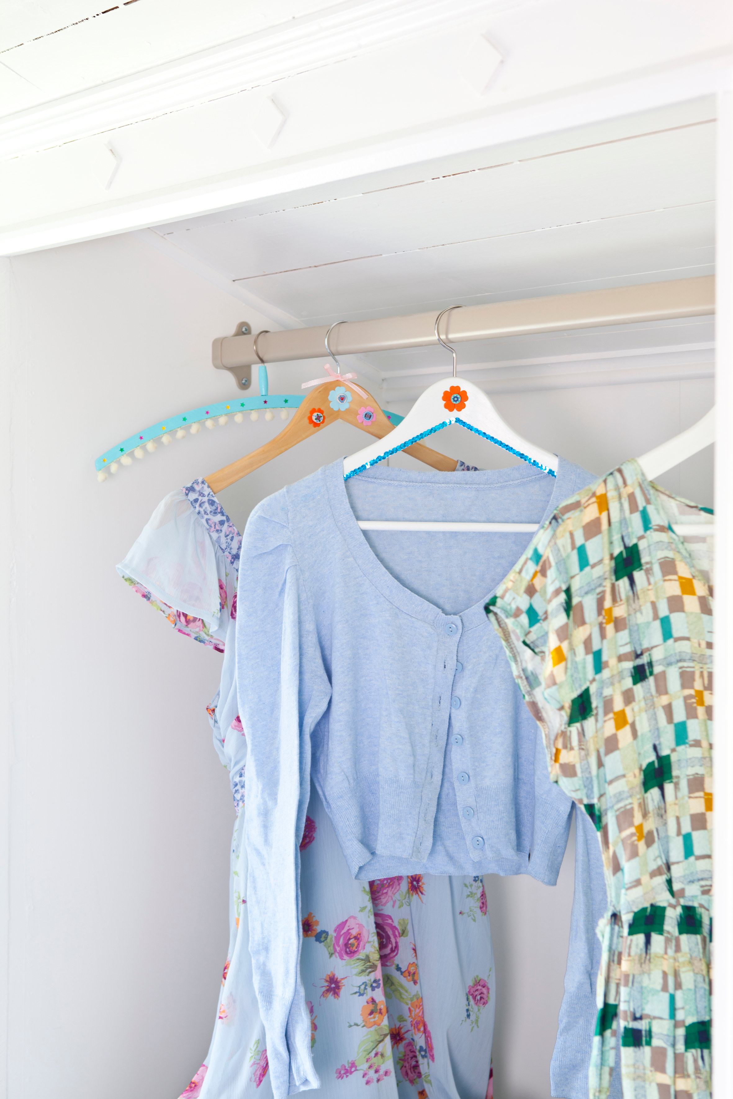 – Et tips er å ta en skikkelig opprydding av garderoben i forbindelse med at du dekorerer kleshengerne dine. For å skape et helt nytt inntrykk kan du også male kleshengerne før du begynner å dekorere dem, sier formgiveren og bloggeren Sofia Brolin.