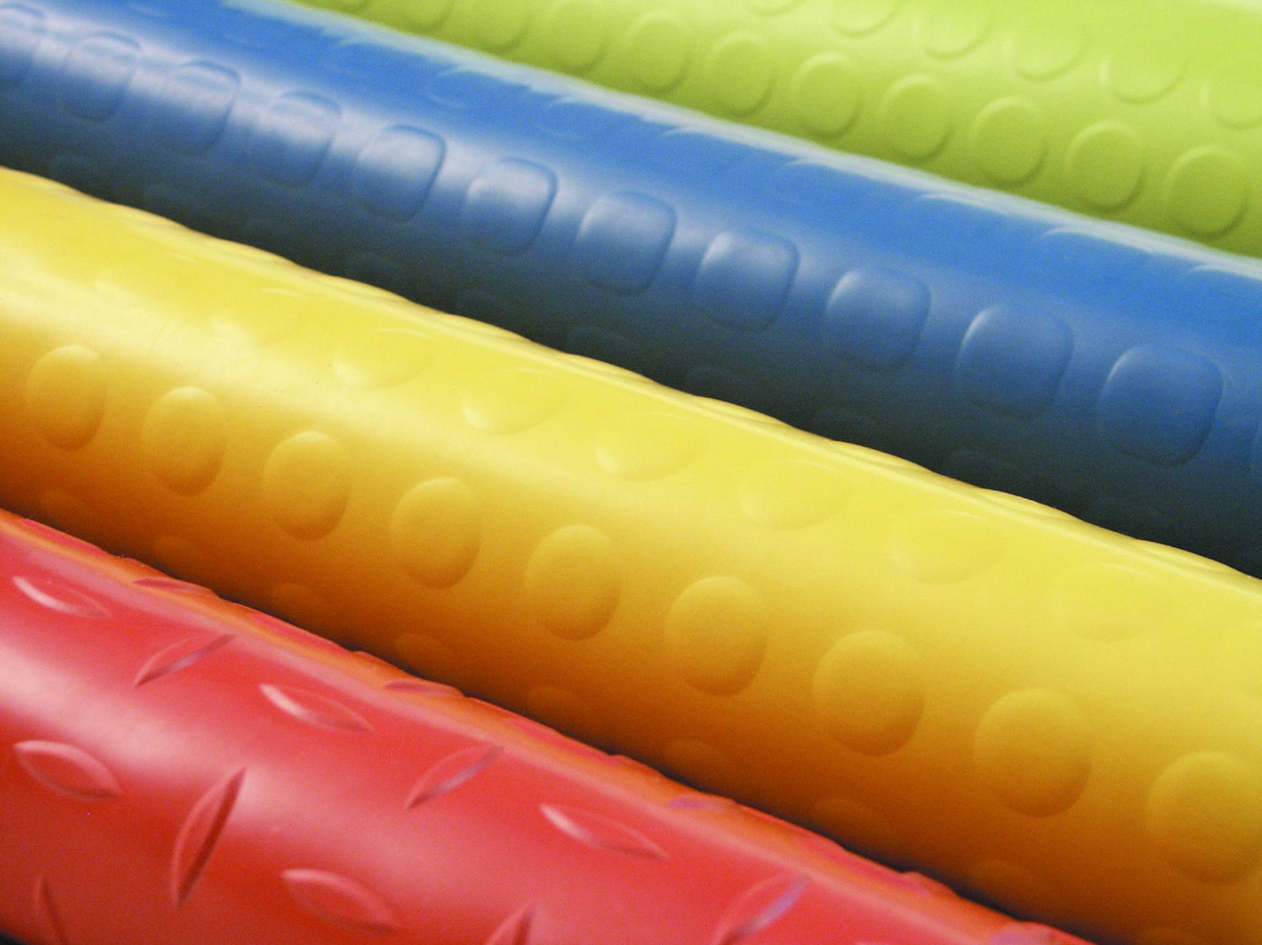 Strukturen hos et gummigulv er annerledes enn på vinyl, og fargene er