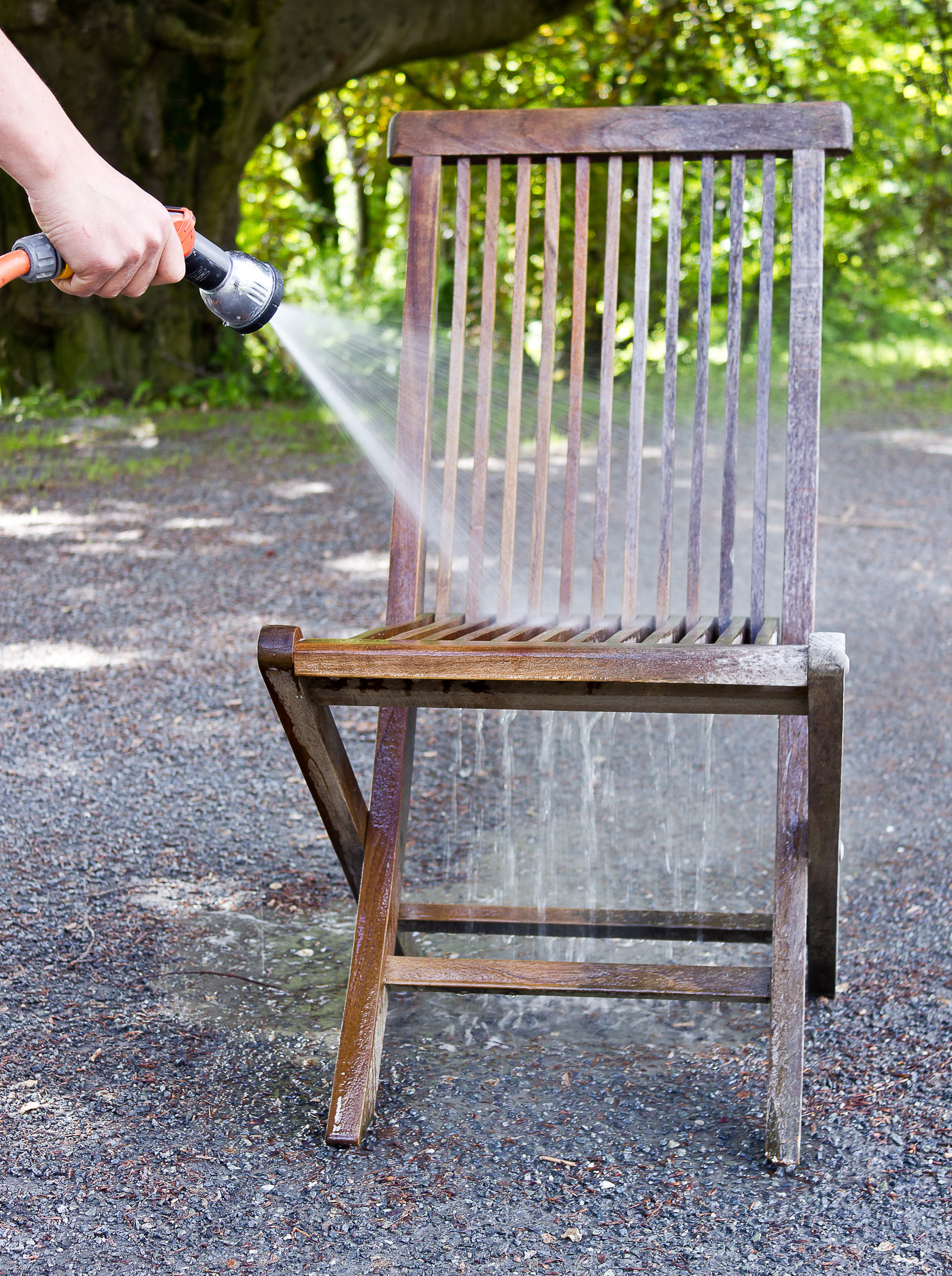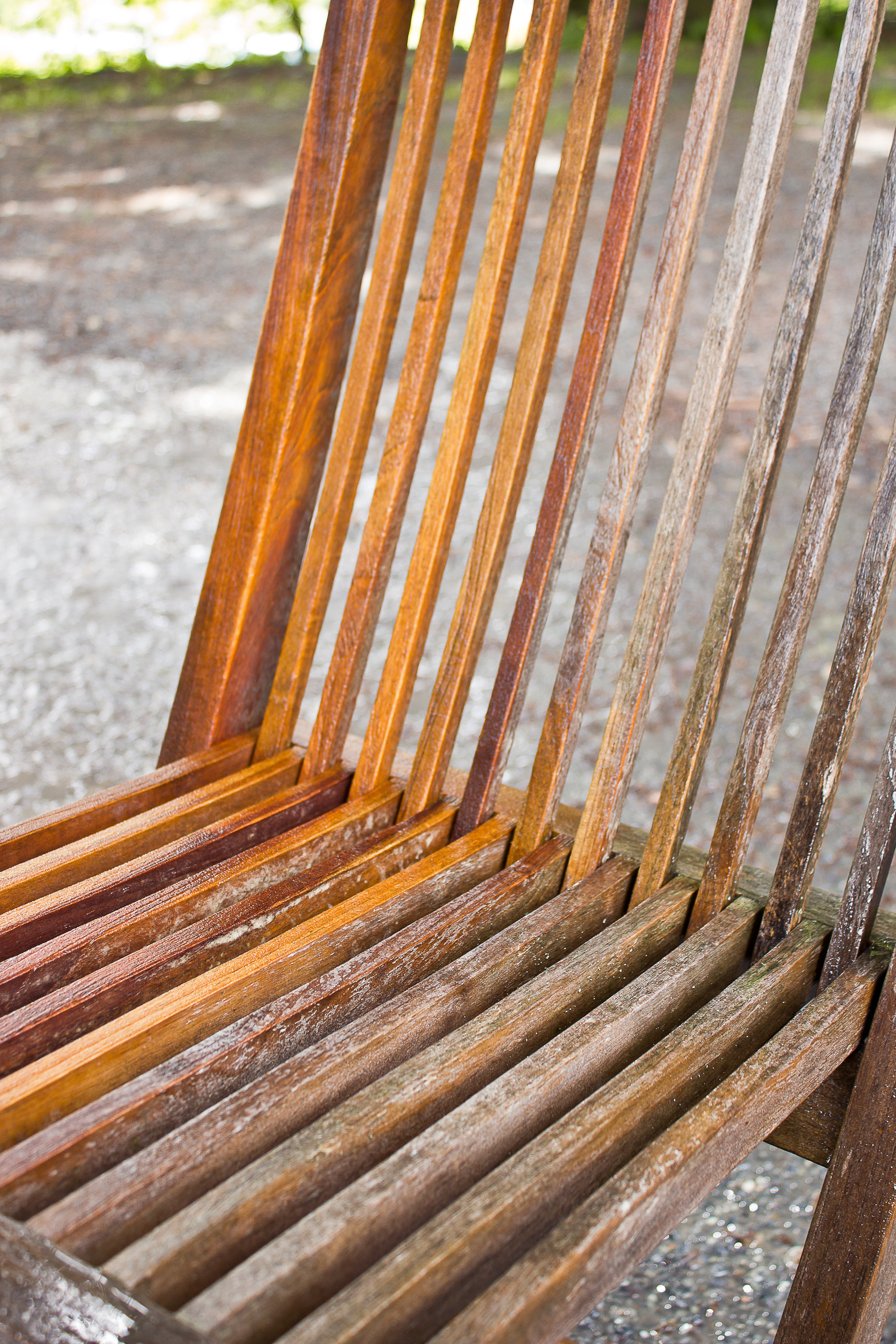 Når teakmøbler står ute i regn og sol blir de fort grå og slitt i overflaten. Treverket blir tilsmusset og angrepet av svertesopp, og solens UV-stråler begynner raskt å bryte ned og flise opp overflaten. Etter en enkel rens, fremstår stolene igjen nærmest som nye.