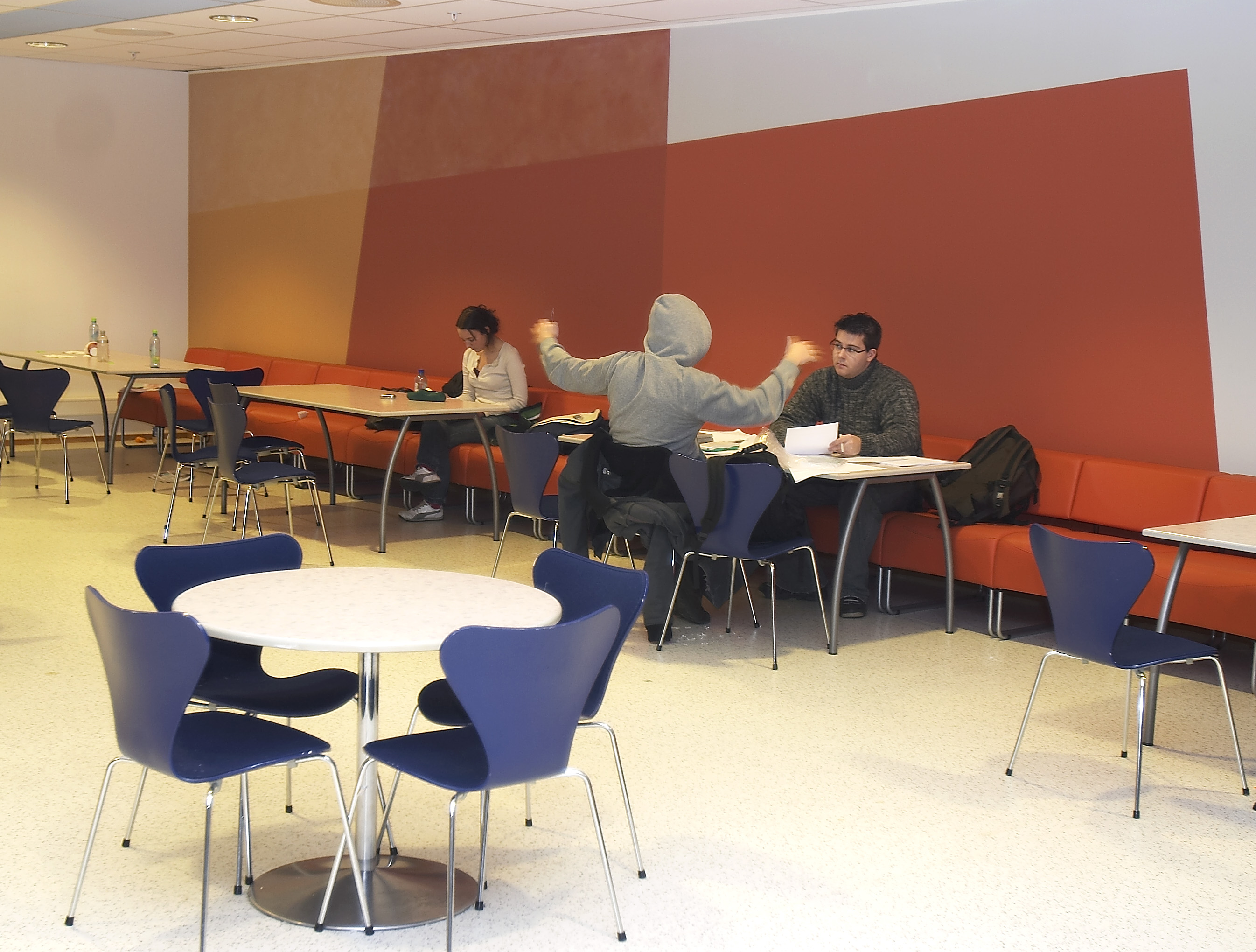 Fasiliteter og aktiviteter gjør bygget til et godt sted å være, både faglig og sosialt. Et hus som lever utover fastsatt studietid. Glemte vi å fortelle at bygget også har et champagnerom for festlige anledninger?