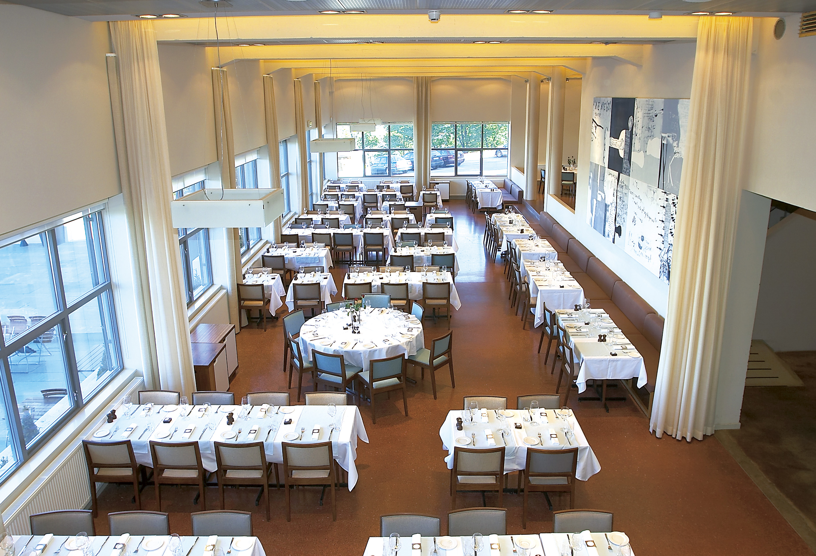 Ekebergrestaurenten har flere spisesteder. Det er først og fremst hovedrestaurenten - á la carte-restaurenten med plass til 200 gjester. Her finner vi et tilhørende mesasin med et chambre séparée til de små selskap, mens man i annen etasje finner den store fest- og konferansesal. Her er også en loungebar. Terrasseserveringen bak glassfasader gir restaurentens beste utstikt.