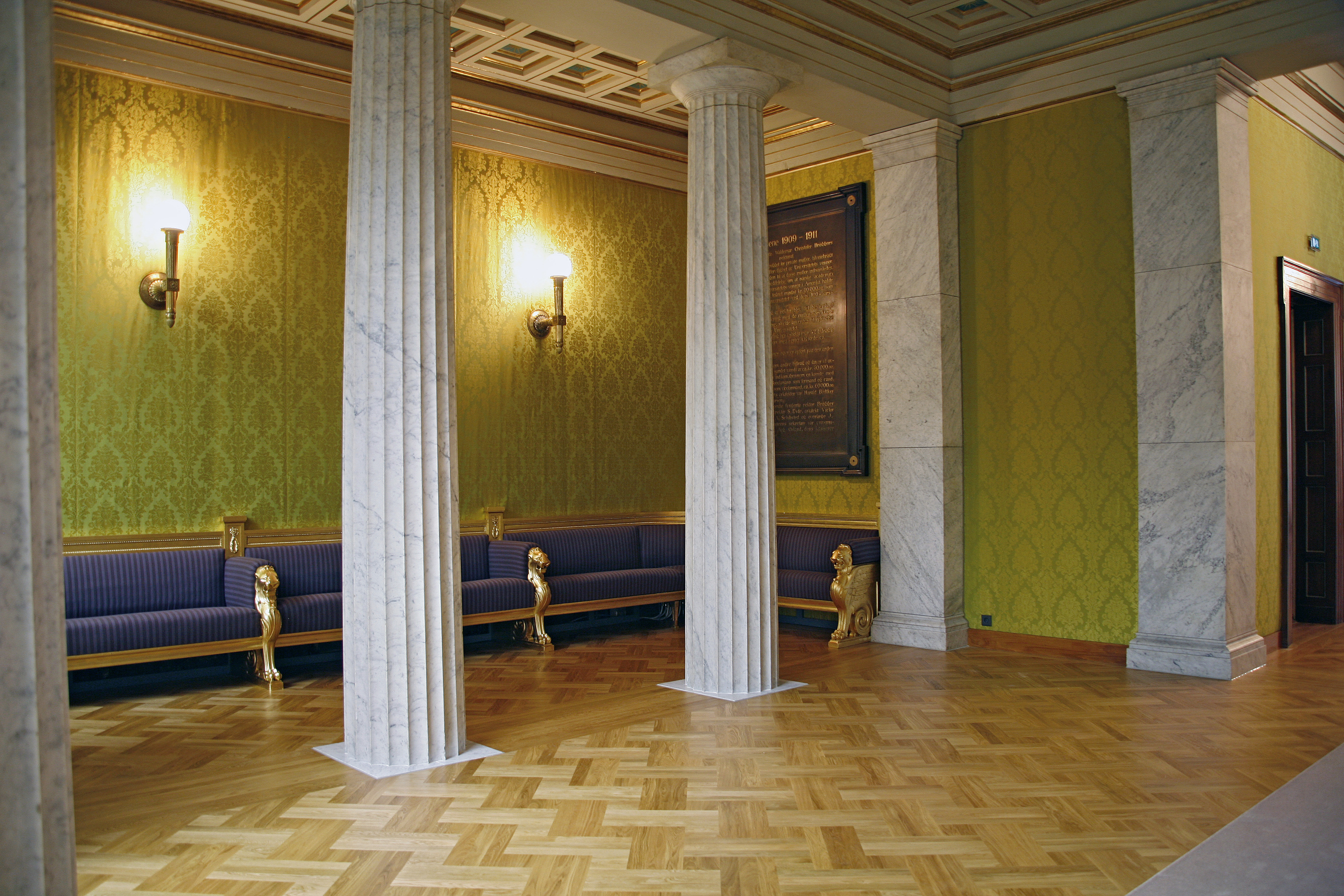 – Det var utført flere dårlige reparasjoner med feilaktige materialer gjennom årene. Taket i den store salen var malt med plastmaling, og stukkaturen falt ned i store stykker. Spesielt ille var det da president Obama var på besøk for å motta Nobels Fredspris. Da hang et helikopter over huset, og så mye av taket falt ned at vi var nødt til å evakuere salen, sier han.