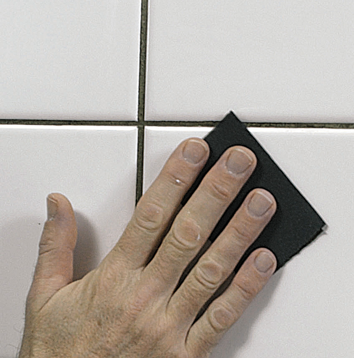 Når fliser og fuger er helt rene kan du slipe de med et fint sandpapir, for eksempel korning 150 eller 180. Fjern til slutt alt slipestøv.