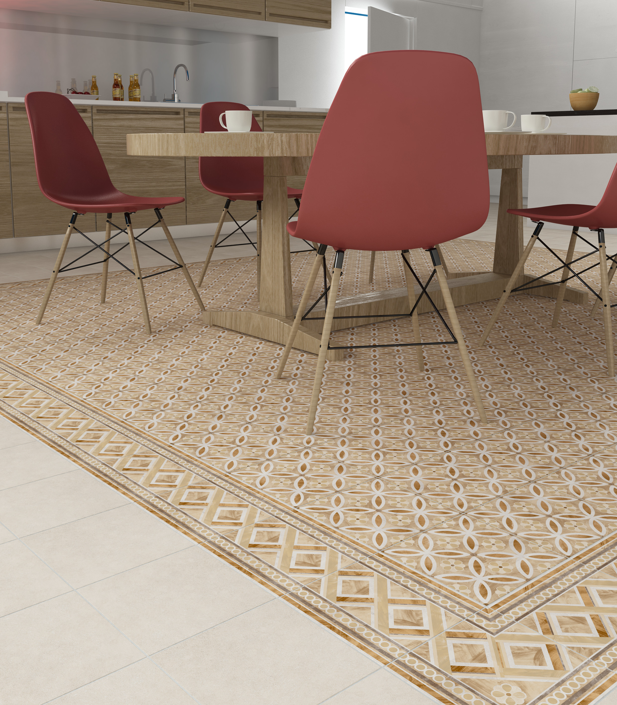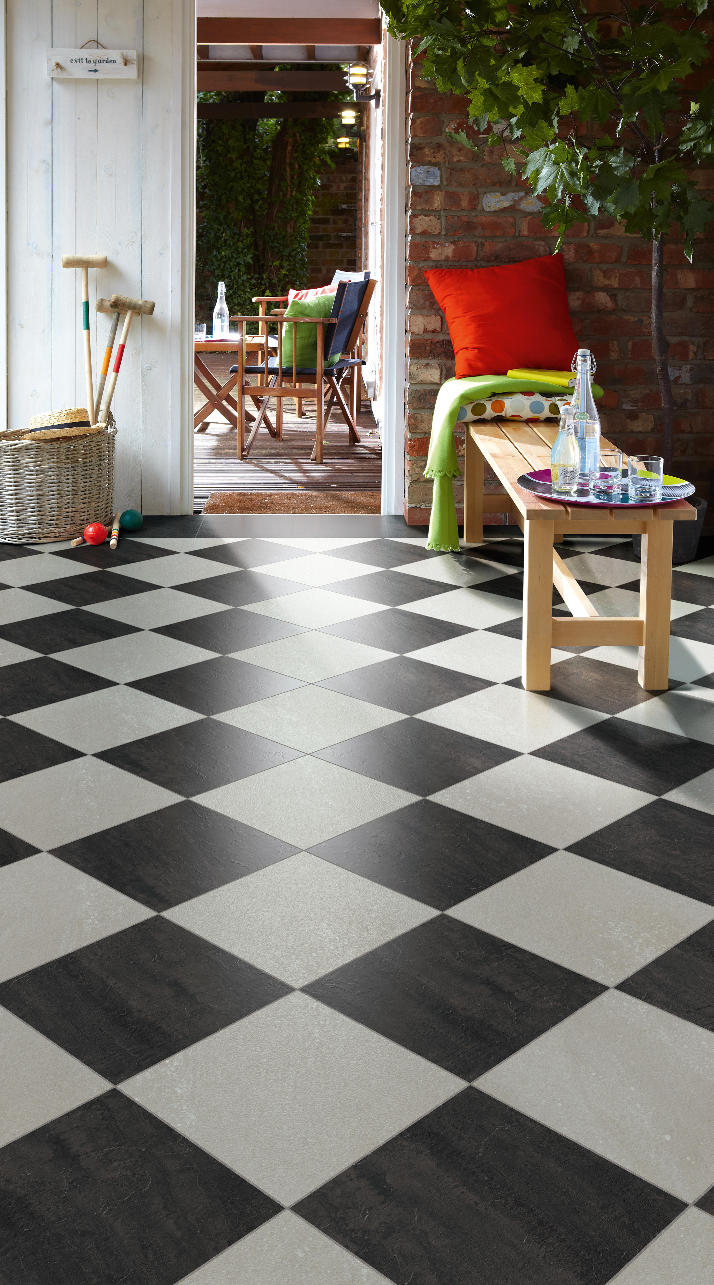 - De fleste rom kler ruter i 40cmX40cm, men de kan fint være både større og mindre. Test form og størrelse ved å rute opp gulvet med tape. Da ser man fort om størrelsen passer og om rutene skal legges diagonalt eller rett. Er rommet stort, kan rutene gjerne rammes inn av en bord, tipser hun.