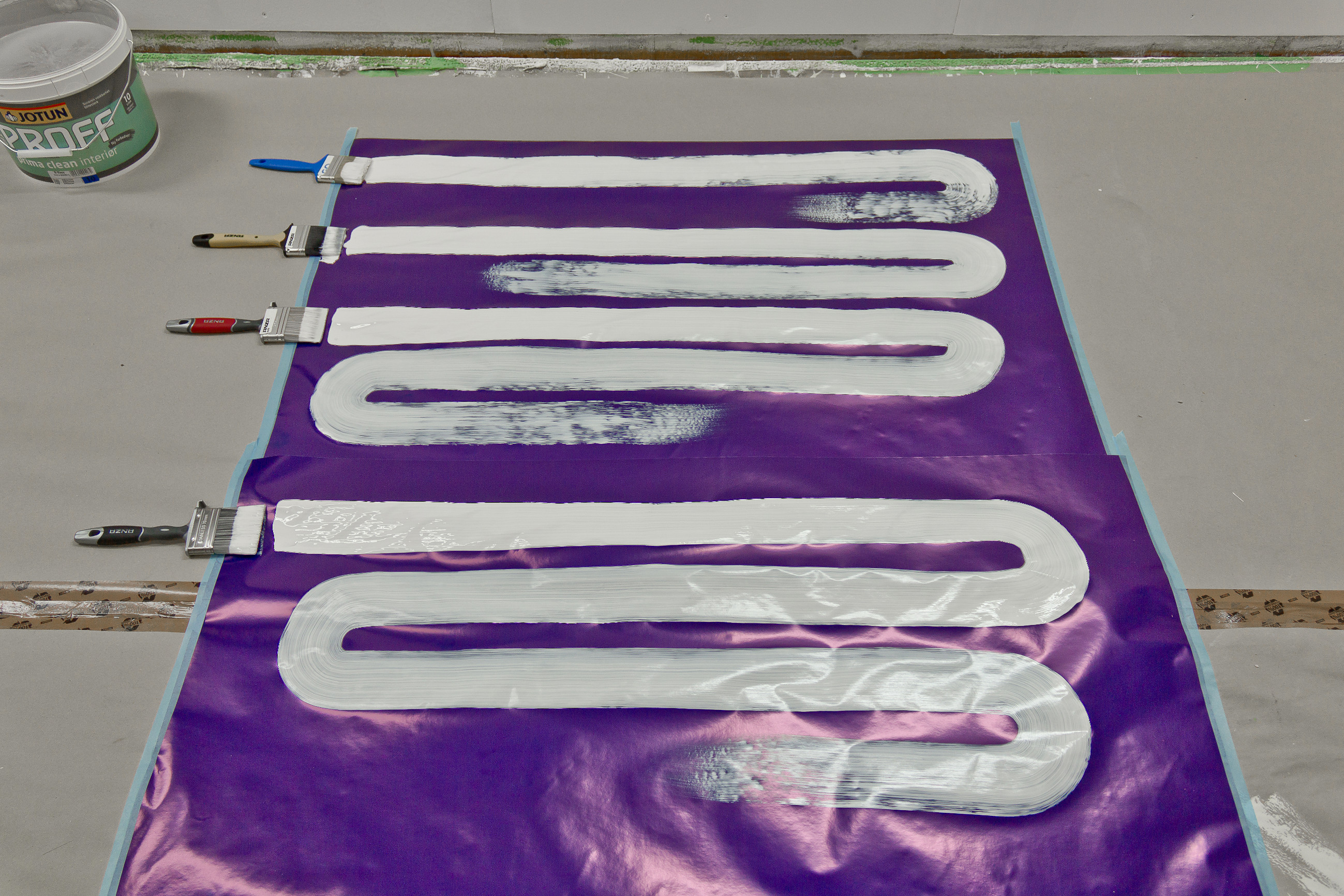 Deretter vaskes penselen, for å se hvor enkelt det er å få den ren fra maling.