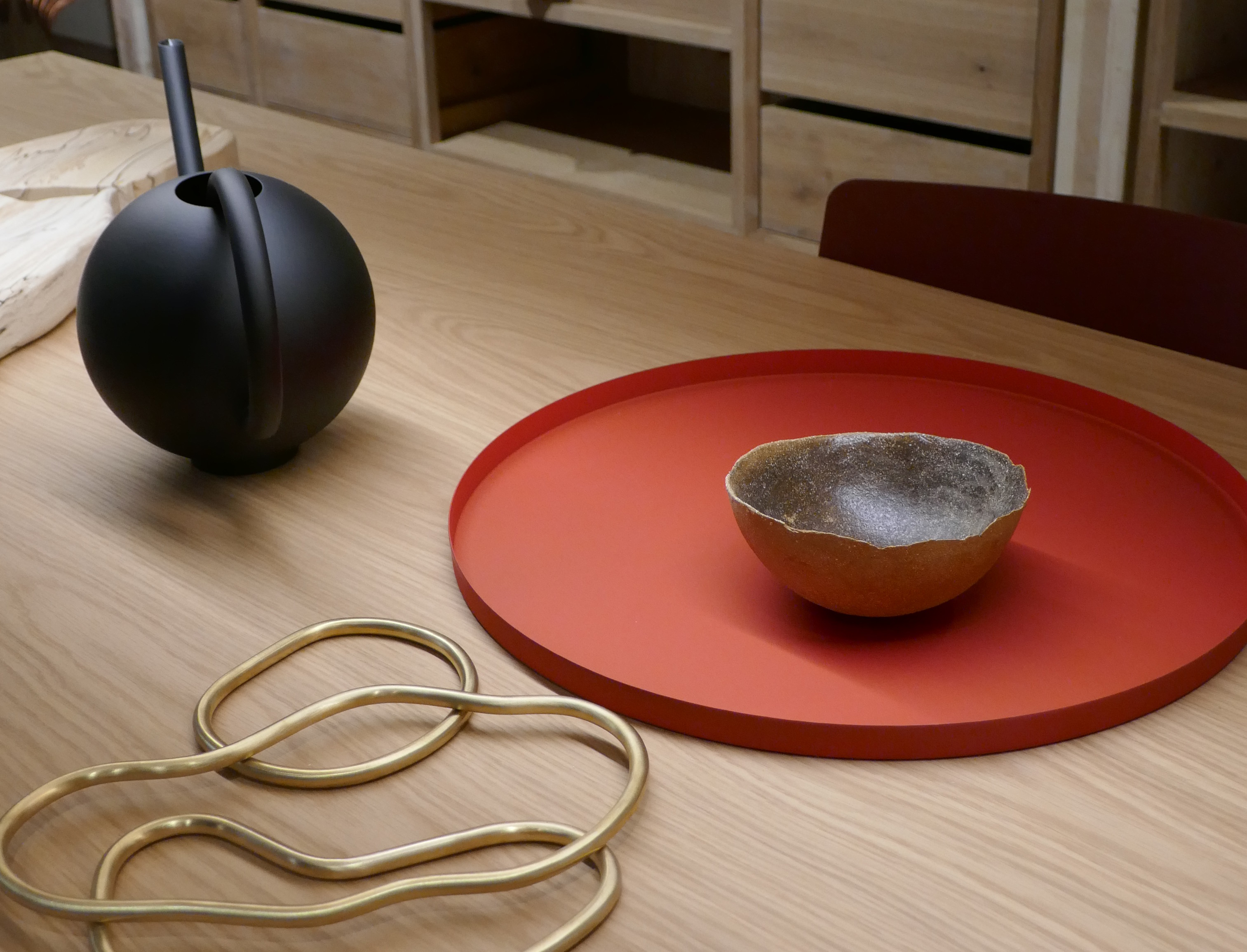 Parallet med messen har mange leverandører åpne showrom. Hos Storeys får vi bekreftet at rødt er en aktuell farge. Torhild Rustenberg er fargebevisst i rød kjole. Og det finnes absolutt tapet som kan gi liv og dybde til veggene.