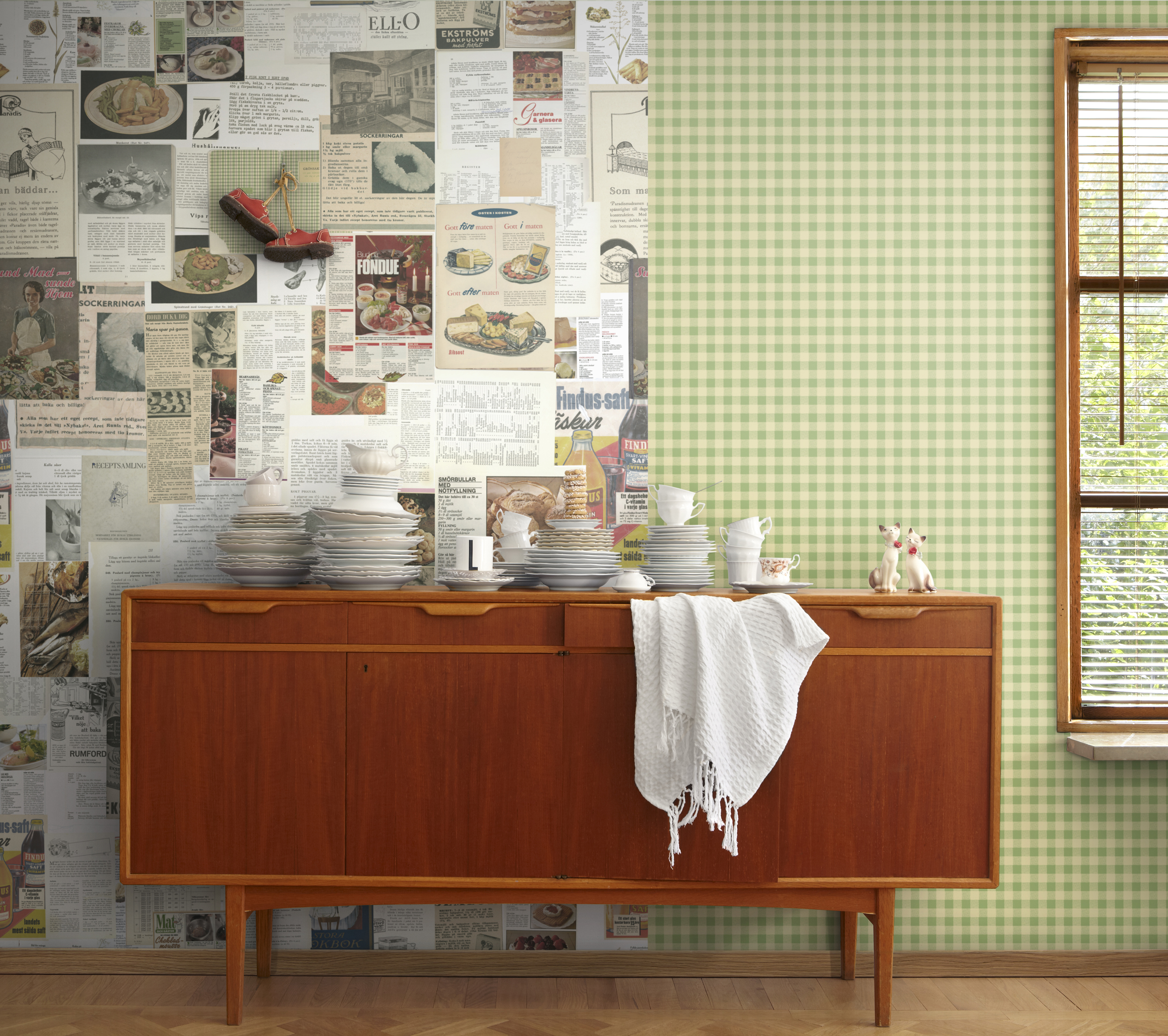 Vi er mange som elsker å lese oppskrifter. Ved å lage fototapet av favorittoppskriftene er de alltid tilgjengelige for inspirasjon og bruk. Mulighetene med fototapeter er uendelige – du kan tilpasse tapetet til akkurat din vegg, bruke ferdige motiver eller velge egne bilder og oppskrifter. I Mr Perswalls nye kolleksjon Nostalgic har de laget fototapetet Granny, som viser gamle svenske oppskrifter og reklame, som kan tilpasses egne mål. Her finnes oppskrifter på fastelavnsboller, sukkerbrød og fondue, blandet med nostalgisk reklame for Findus-saft, Ekströms Bakpulver og ost.