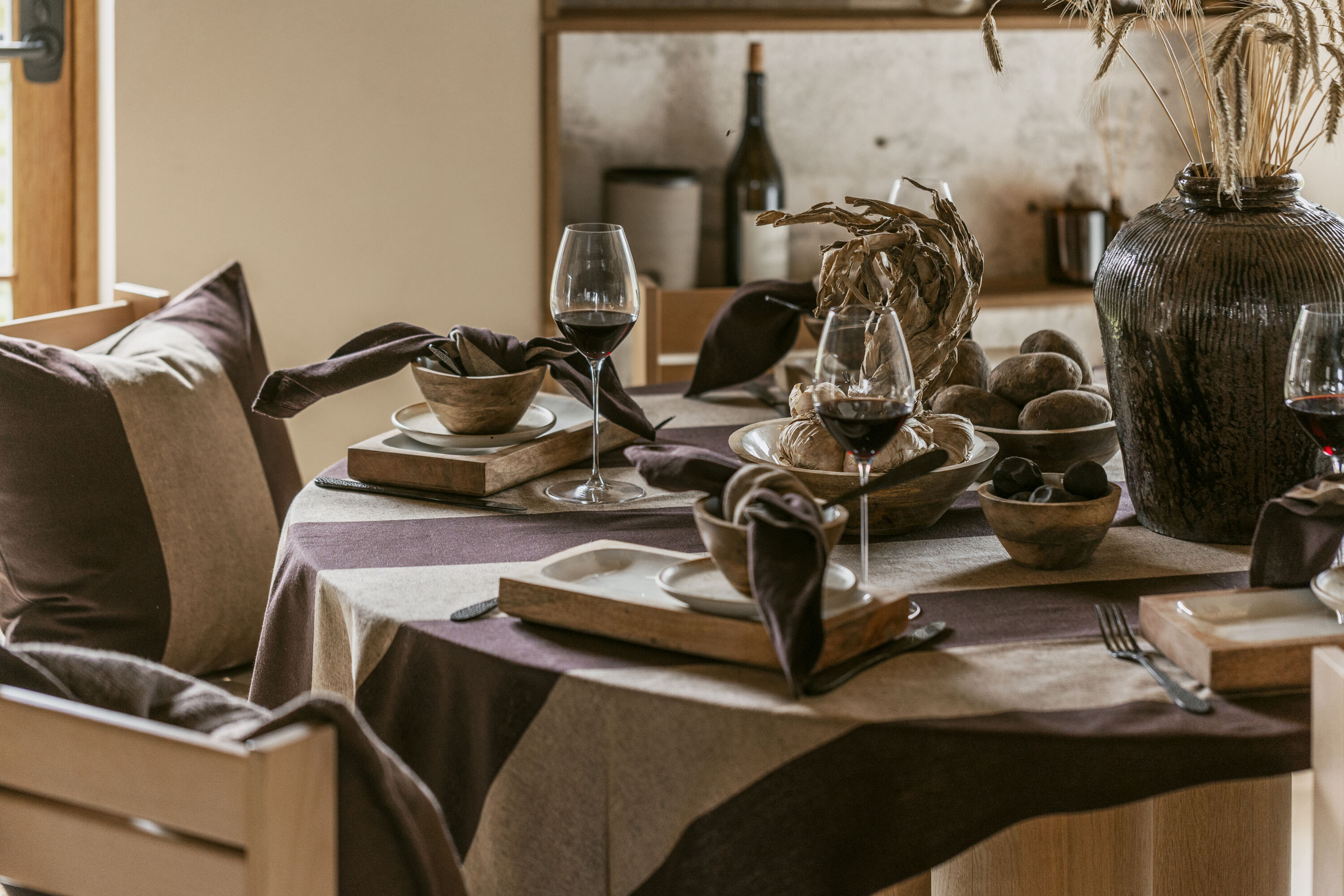Det overordnede fargebildet viser at den nye nøytralen består av varme jordtoner som karamell, kaffe og sjokolade. Dette er farger som gir tyngde og kobler interiøret til natur og velvære. Bruk mørkt treverk på kjøkkenskap, gulv og møbler. Her passer rustikke overflater, årringer, og det upolerte fint inn. Detaljer i glass og brunt gir et retropreg med referanser til 1960-1970-tallet, men i en moderne og raffinert skandinavisk innpakning.