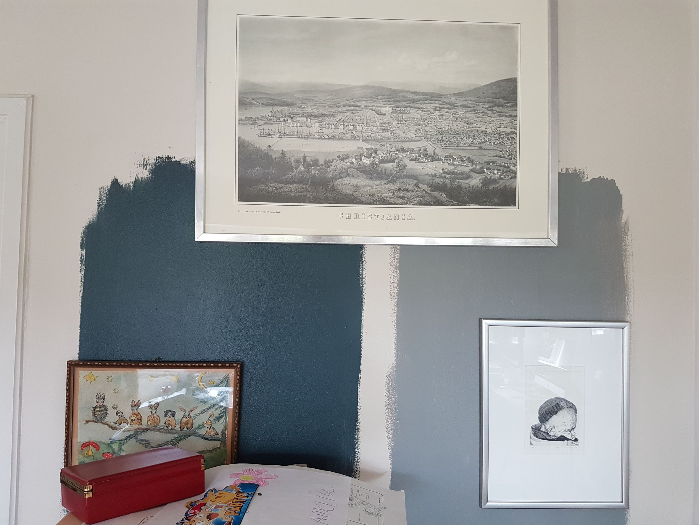 − For da tenker folk at det er enkelt å sette farger i rommet med puter, pledd og gardiner. Men hva med å tenke motsatt? Jeg elsker blått – nesten alle klærne mine er i blå nyanser. Derfor vil jeg ha blå sofa, og minst én blå vegg. Nordsjö har også et hjelpemiddel som kan gi deg mange nye tips. Hvis du ser på fargeveggene i våre butikker, så ser du at hver fargechip har matchingtips på baksiden. Her får du tips til ton-i-ton-kombinasjoner, nøytrale kombinasjoner og «designerens valg» som er litt mer vågale kombinasjoner, sier hun.