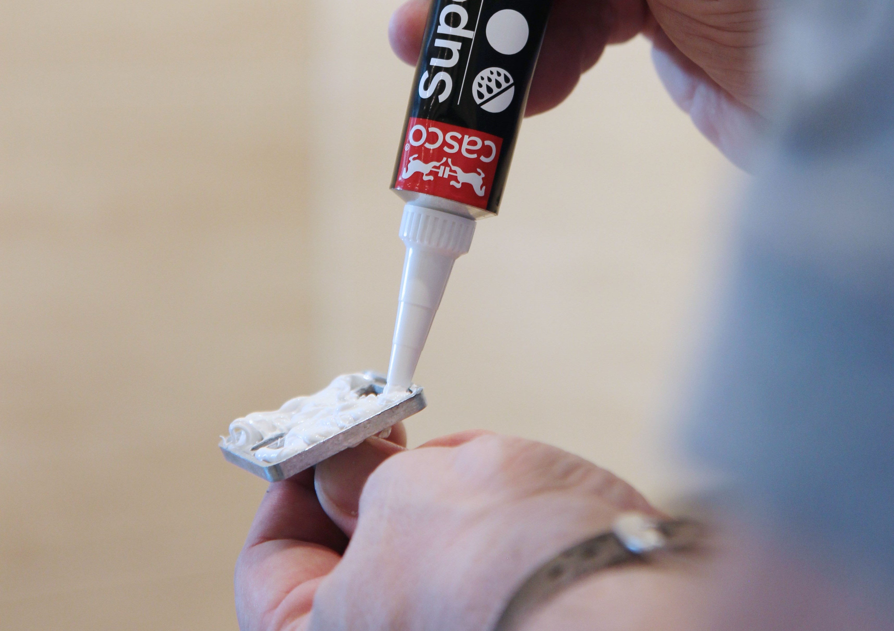 − For de første må du ha riktig verktøy. Og kanskje må du en tur til nærmeste gitarbutikk. For du trenger også en gitarstreng. Du må også ha arbeidshansker, vindusskrape, kniv, skuresvamp og en unbrakonøkkel. Sistnevnte er kjekk å ha for å demontere detaljene, sier Arne Johnny Tverabaak fra limgiganten Casco.