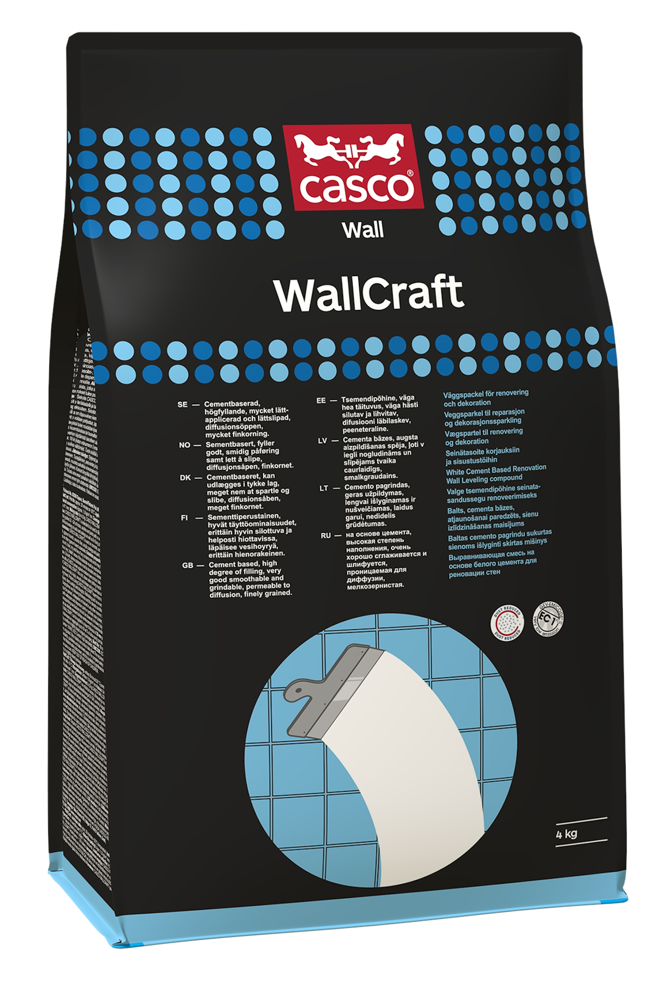 Casco WallCraft kan brukes for å flekk- eller helsparkle en rekke ulike materialer og gi et perfekt underlag for maling eller tapet:
