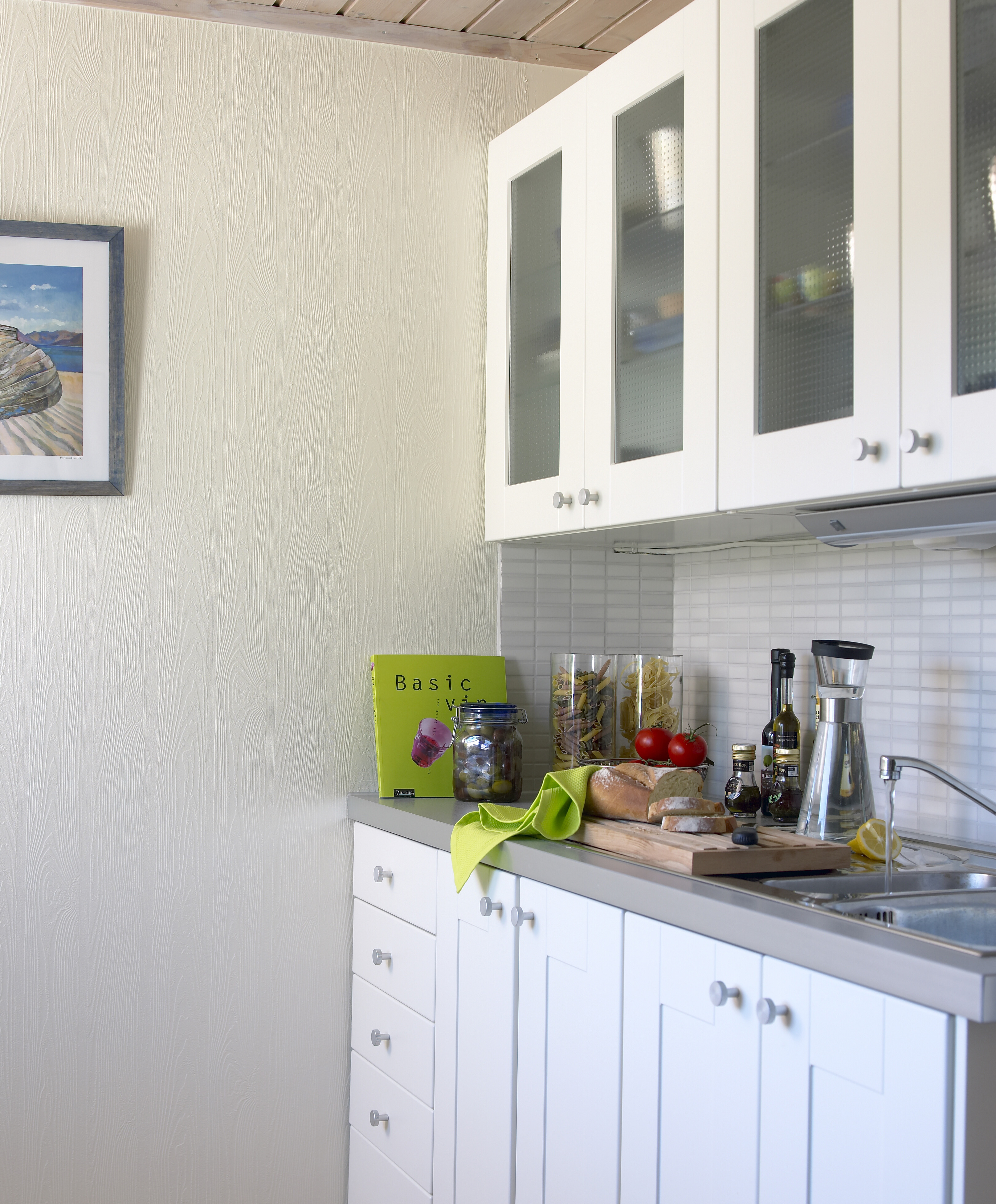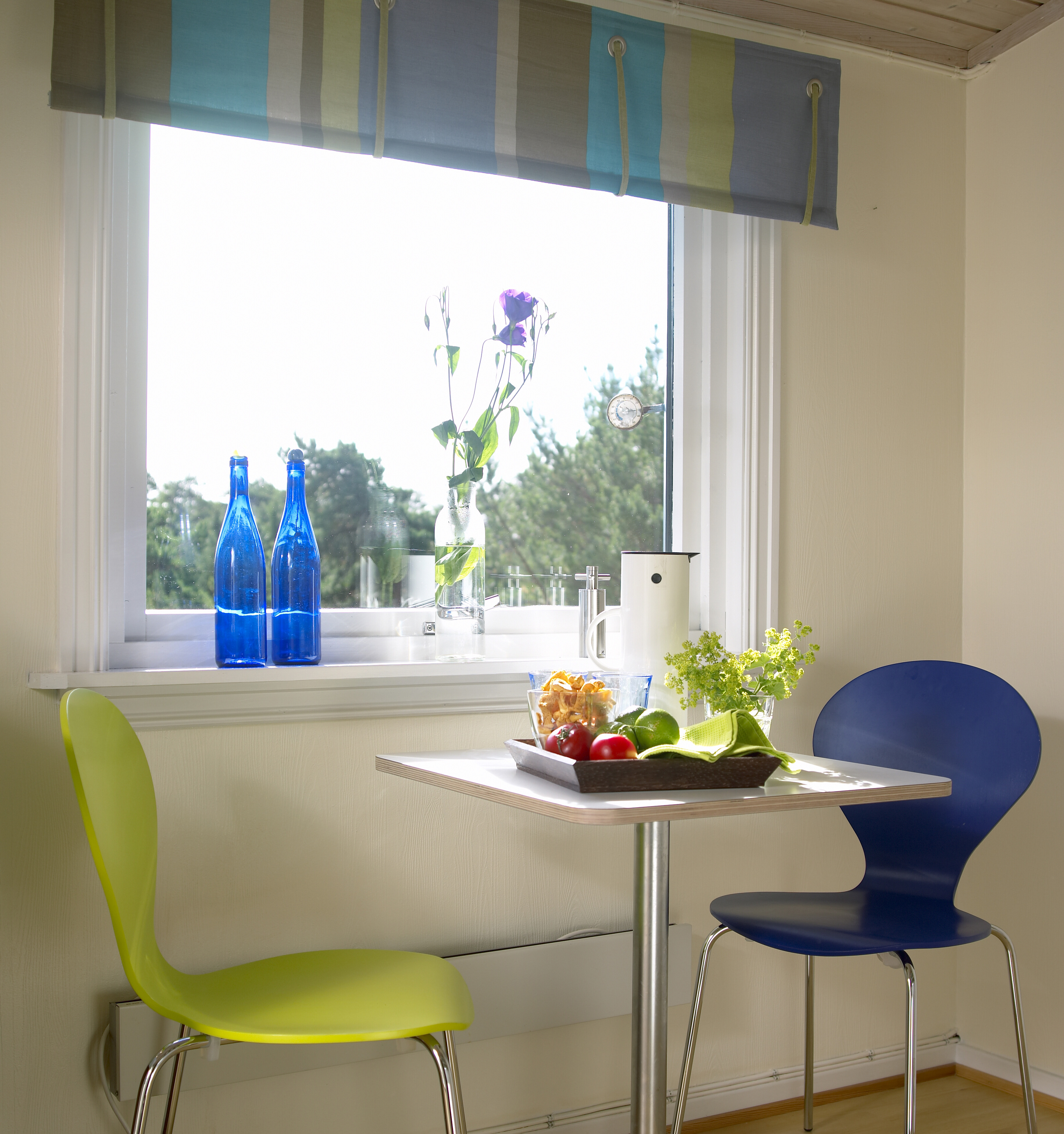 Både vegger og tak bør ha lyse farger for å skape den lette, sommerlige følelsen. Lar man taket forbli trehvitt, vil det virke trykkende.
