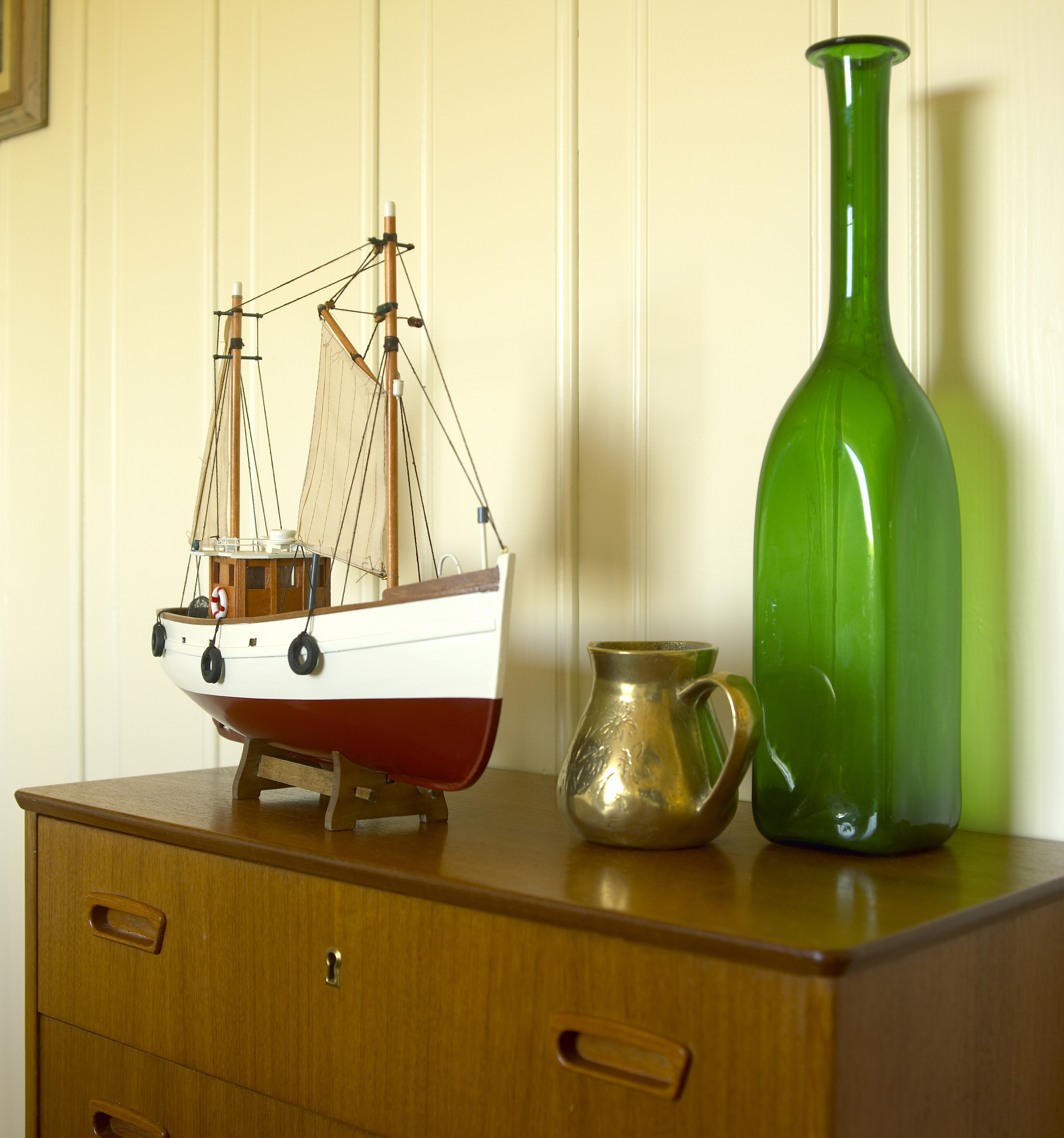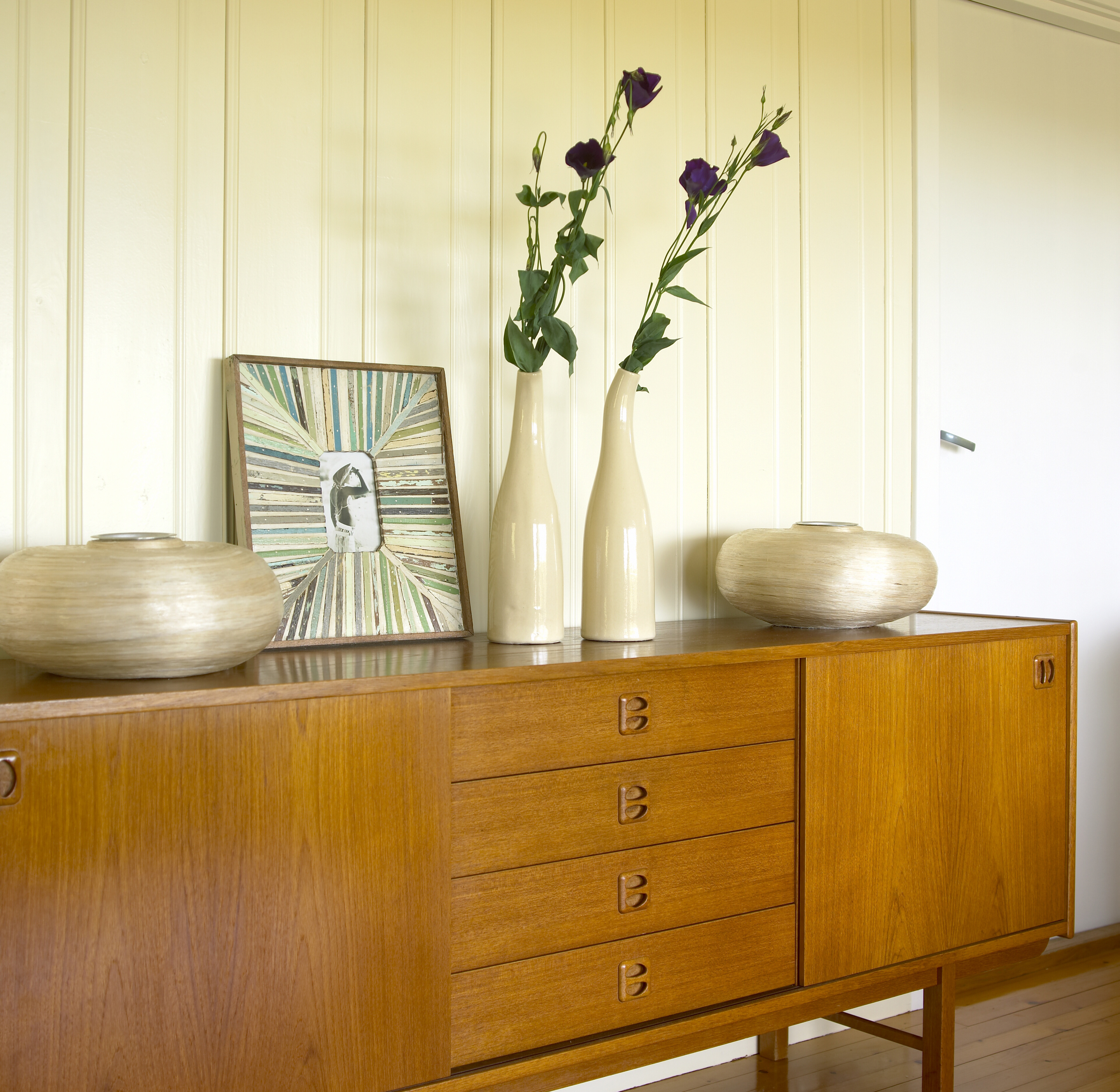 På Edholmen hadde Anette Solheim en del møbler som fulgte med hytta. Noen gikk rett ut, mens andre ble beholdt. Noen gamle teakmøbler passet det godt å beholde, selv om de ikke er de vakreste.