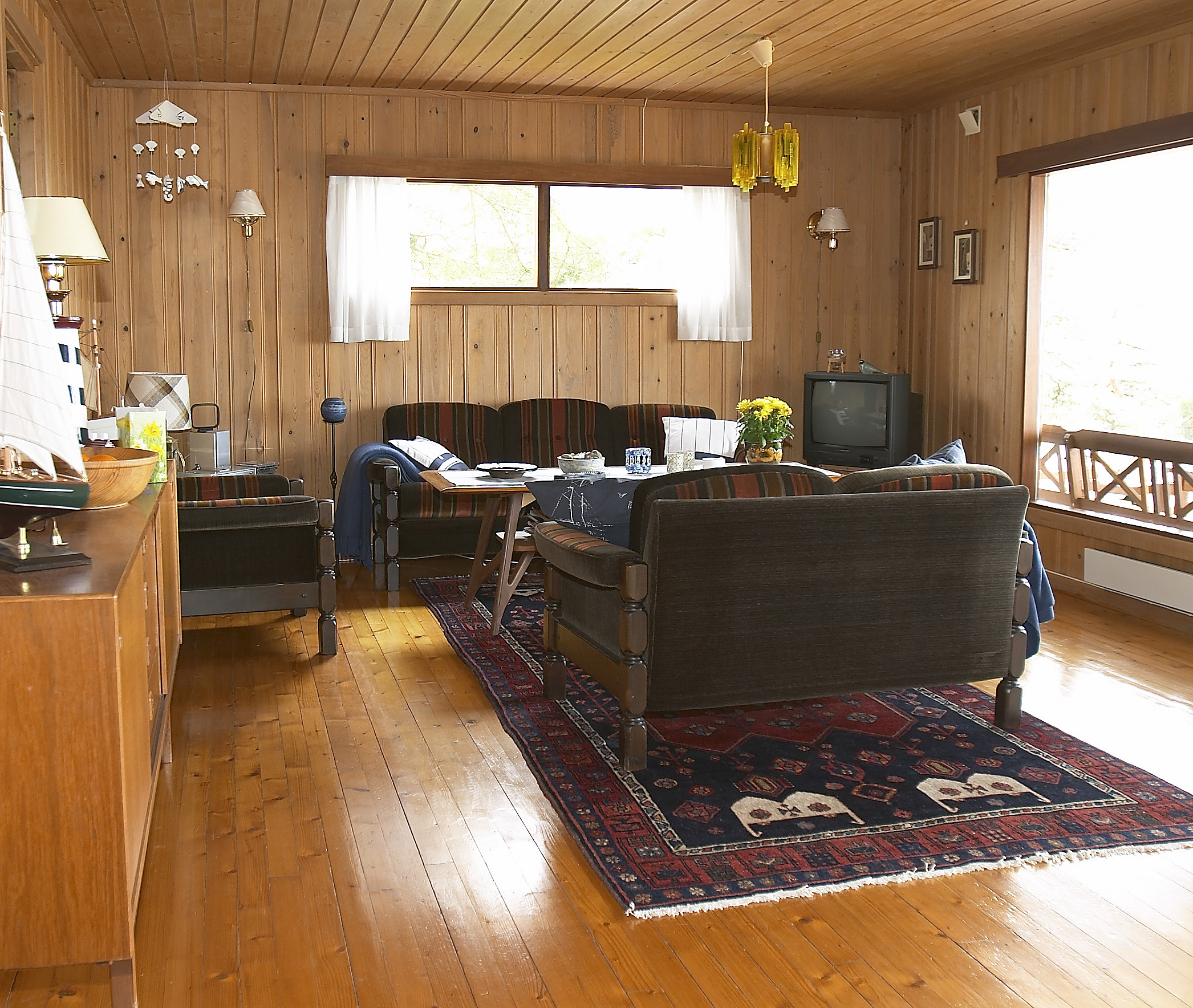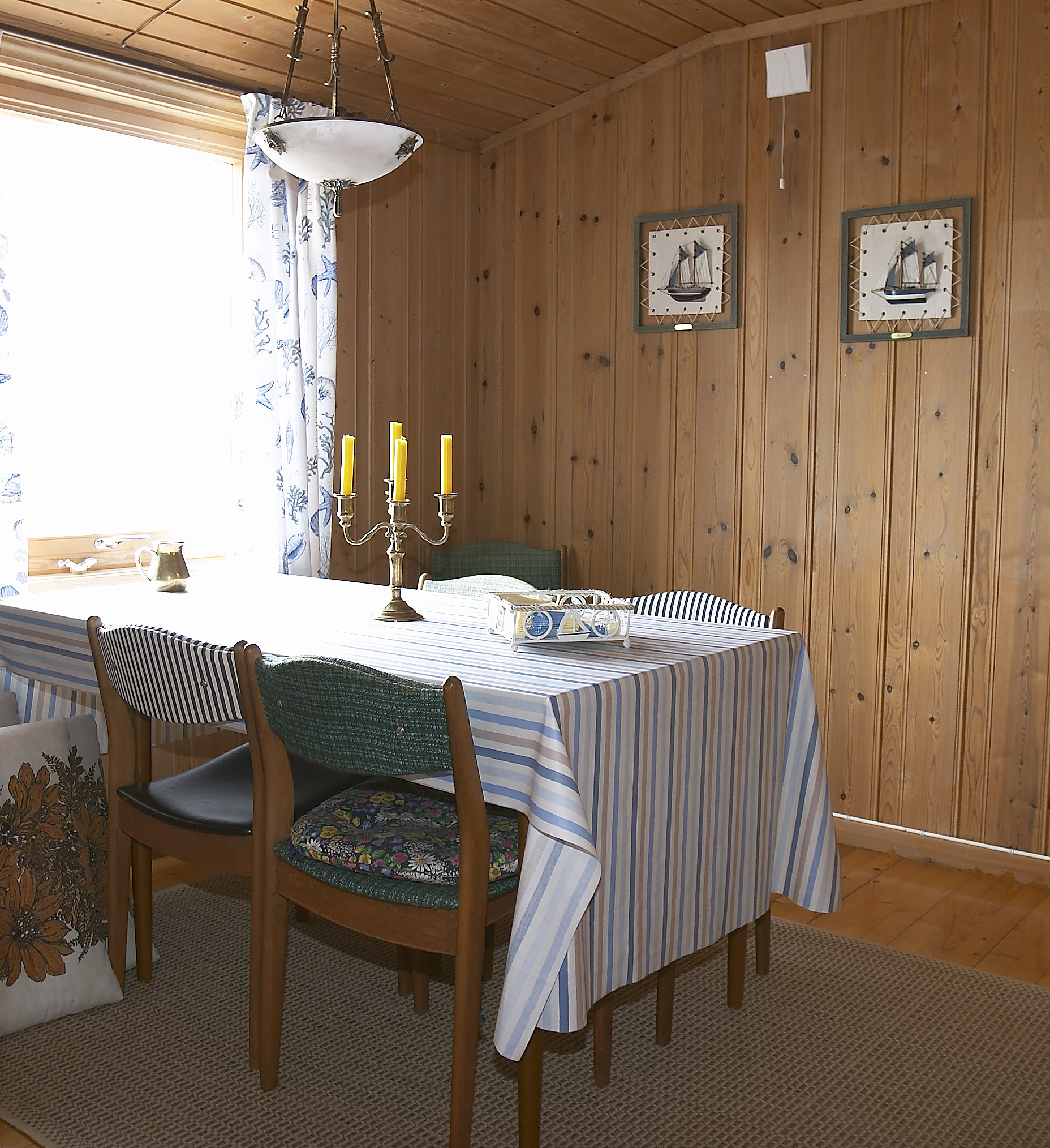 - Teak er jo et treslag som gir assosiasjoner til det maritime. Dessuten er disse teakmøblene litt retro. Det var morsomt å beholde dem fordi de minner om perioden hytta er bygget i, sier Solheim.