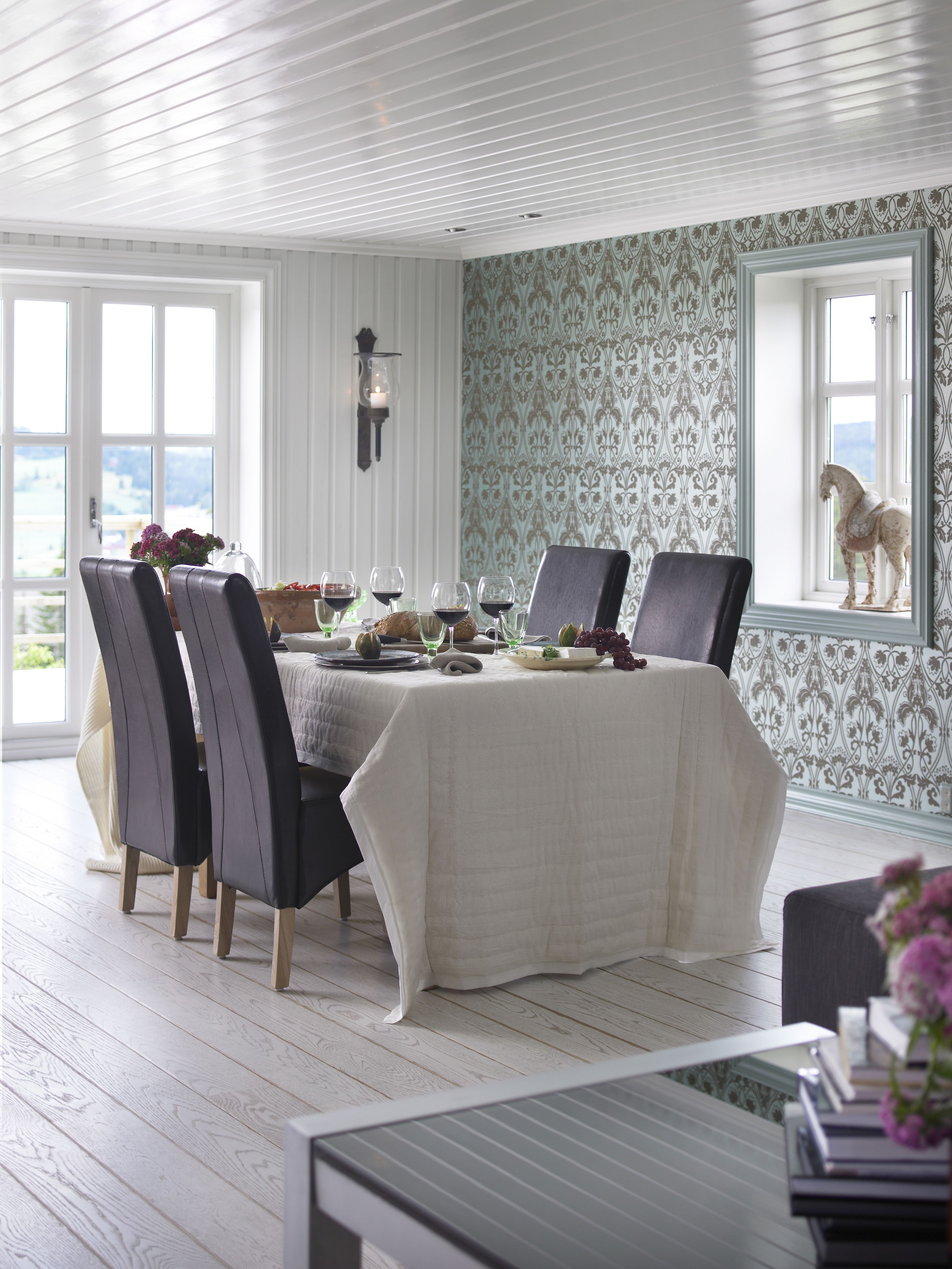 - Sille og Henning var rene drømmekundene, for de var både bevisste og lydhøre. De ønsket å bevare husets sjel, samtidig som de ville skape en tidsmessig og personlig atmosfære. Deres smak er klart mer på den røffe siden. For å gi meg en indikasjon på hvilken fargeskala de så for seg, ga de meg noen prøver fra et fargekart. Sille er glad i turkis, en interiørfarge som kan være krevende hvis den ikke dempes ned med en roligere farge. Da jeg foreslo å kombinere med brun-nyanser, var de begge straks med, forteller Ellen.