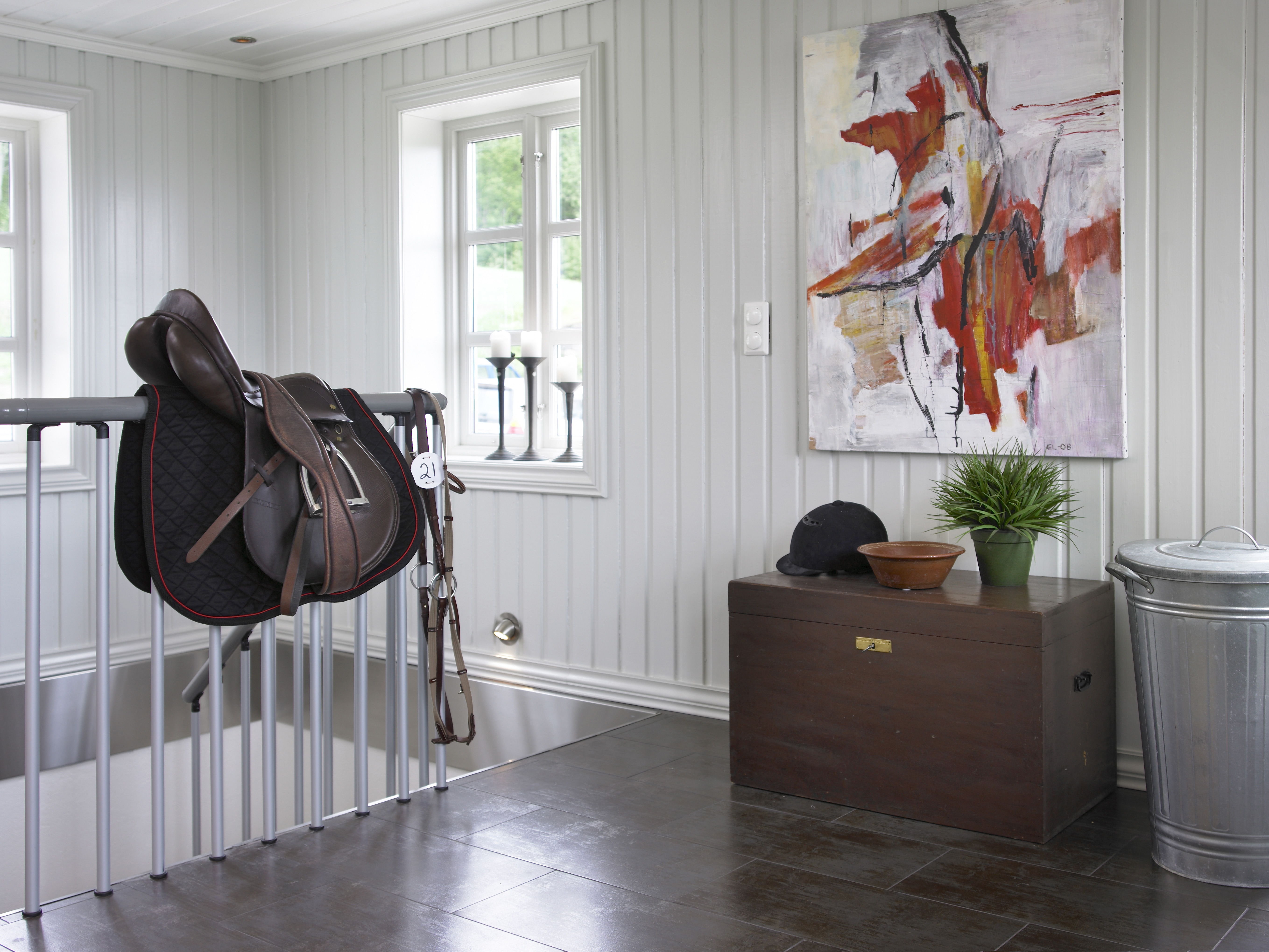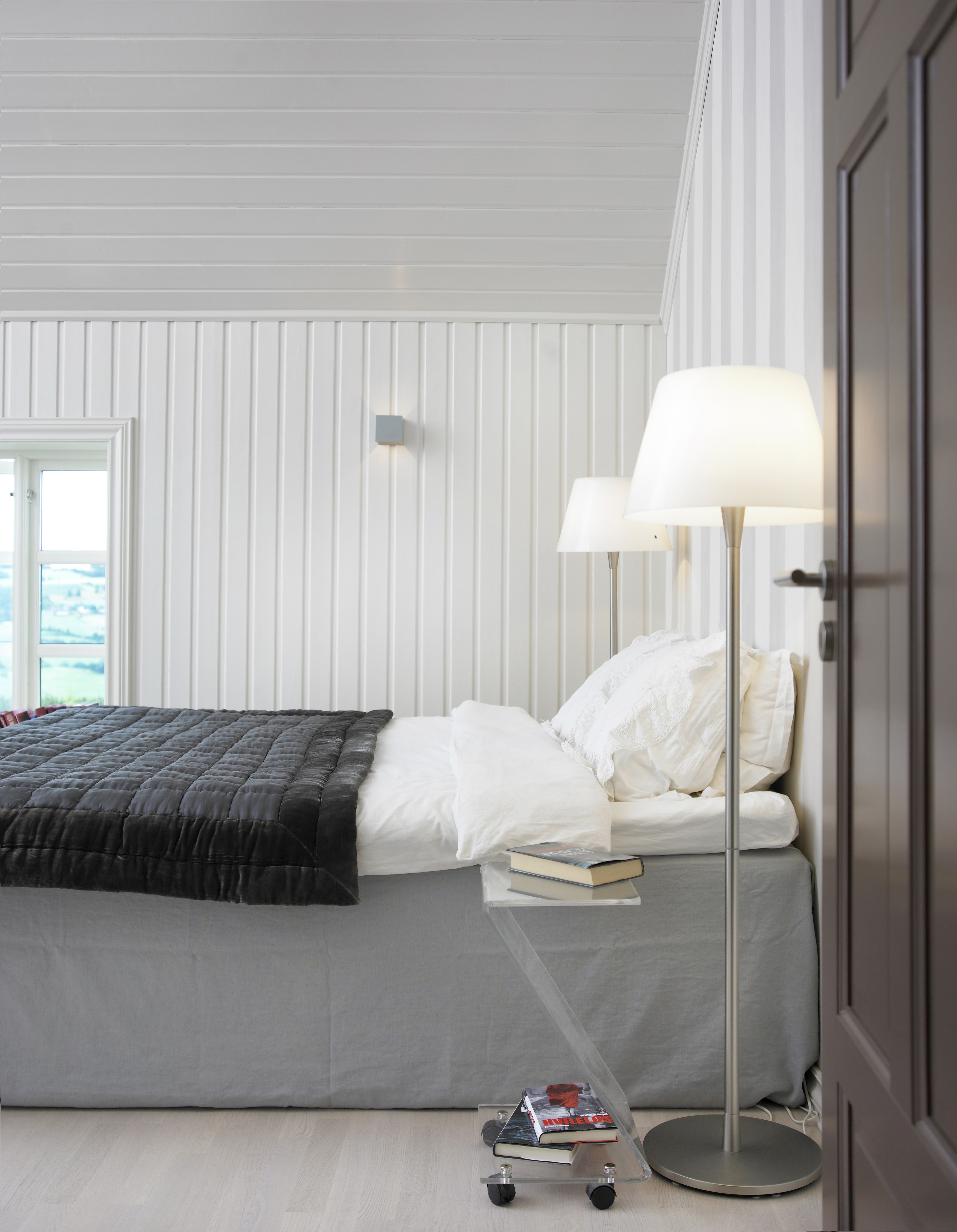 - Før vi begynte å tenke huskropp, satte vi opp en liste på hvordan vi ønsket interiørløsningene. Målet var å få et hus som kunne BRUKES. Vi tegnet størrelsen på de ulike rommene før vi skisset eksteriøret. Ønsket var et hjem med åpne, lyse rom; kun dører der det var nødvendig. Dette er et tømmerhus, og vi ønsket å beholde tømmeret på enkelte innervegger. De øvrige ønsket vi å ha glatte med tapet eller maling, forklarer Sille og Henning.