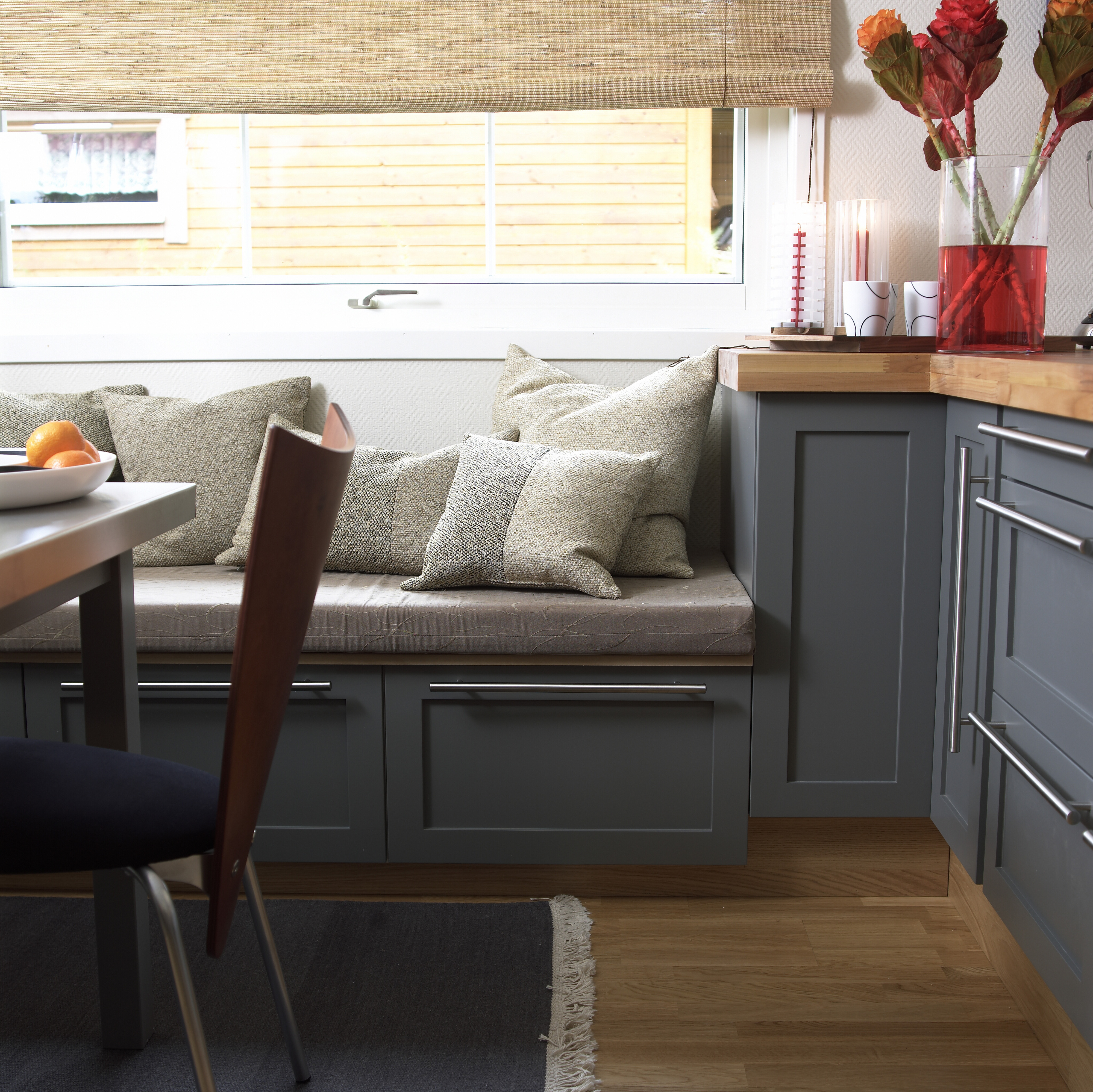 - Sittebenk med lagringsplass gir maksimal utnyttelse av plassen! Mal benken i samme farge som kjøkkeninnredingen for å skape en fin helhet.