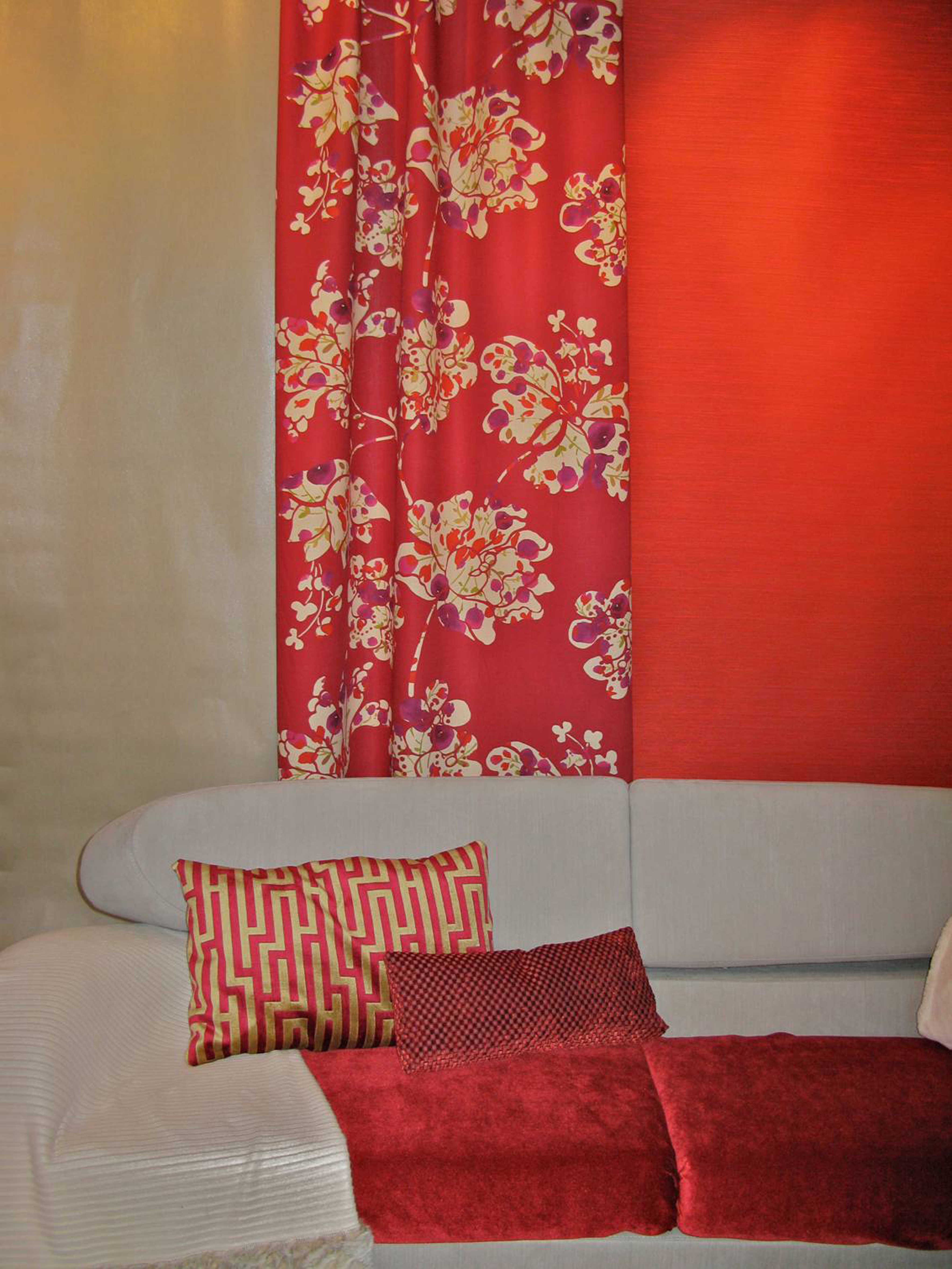 Vakre rødfarger gir også en energi i rommet, som mange trenger i mørketiden, og rødt er en av motefargene som det kommer mer av fremover. Det går også fint an å blande ulike tekstiler i samme rom. Har du litt ekstra tid, er det også flott med en rød, tapetsert vegg.