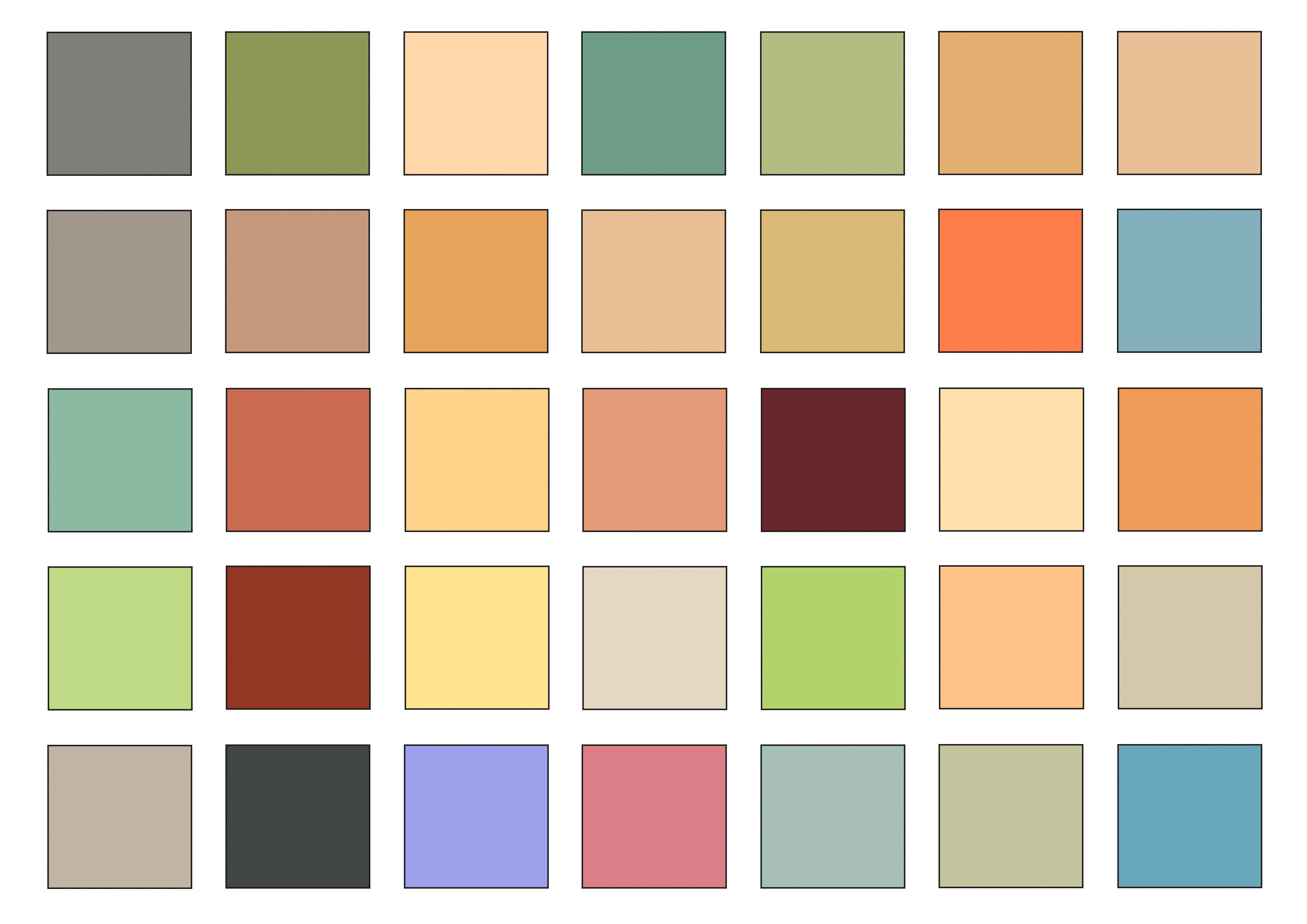 (mørk brunrød), lys og mørk oker, samt grønn jord var populære jordfarger som