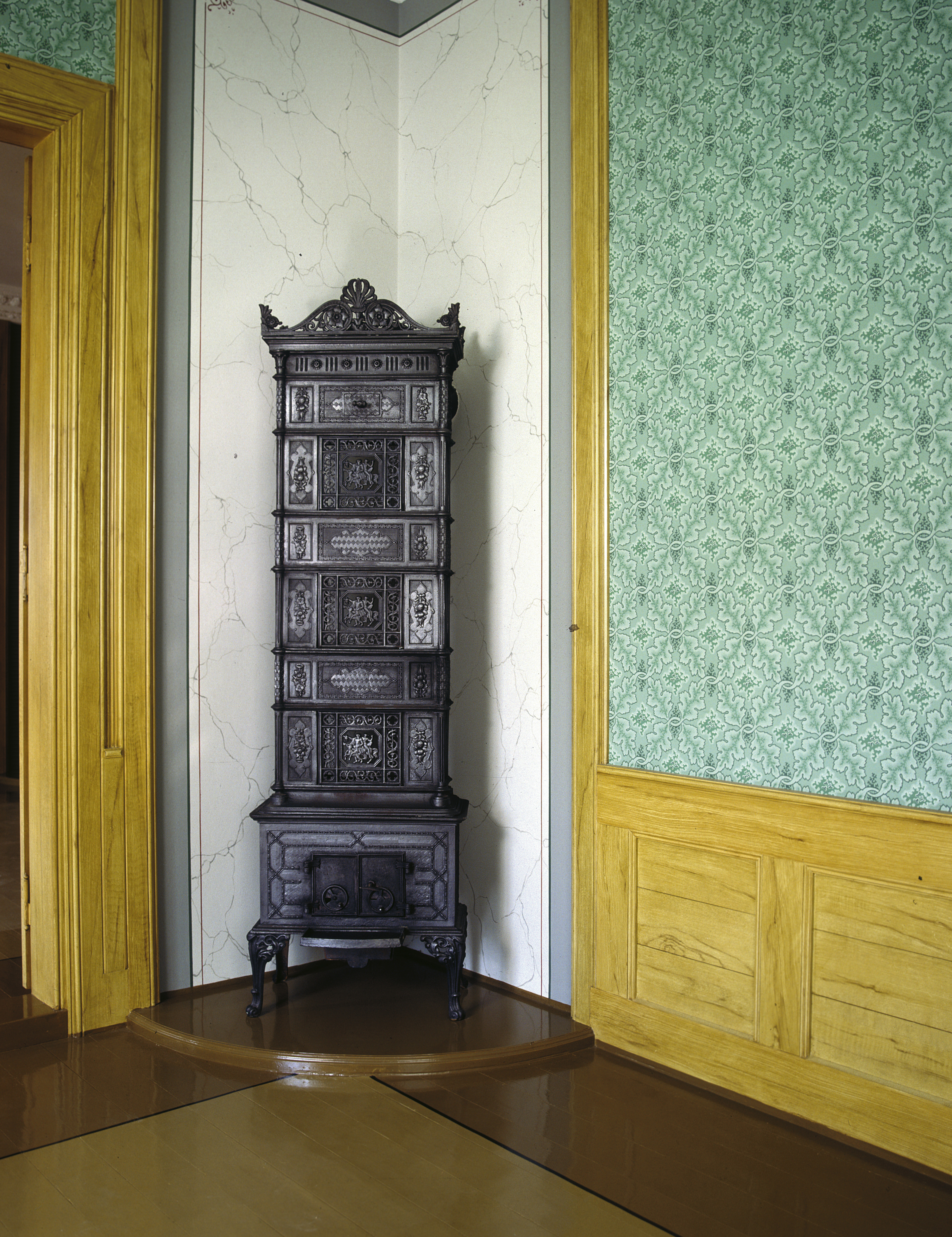 kunne være plane og de striestrukne veggene ble malt eller tapetsert med