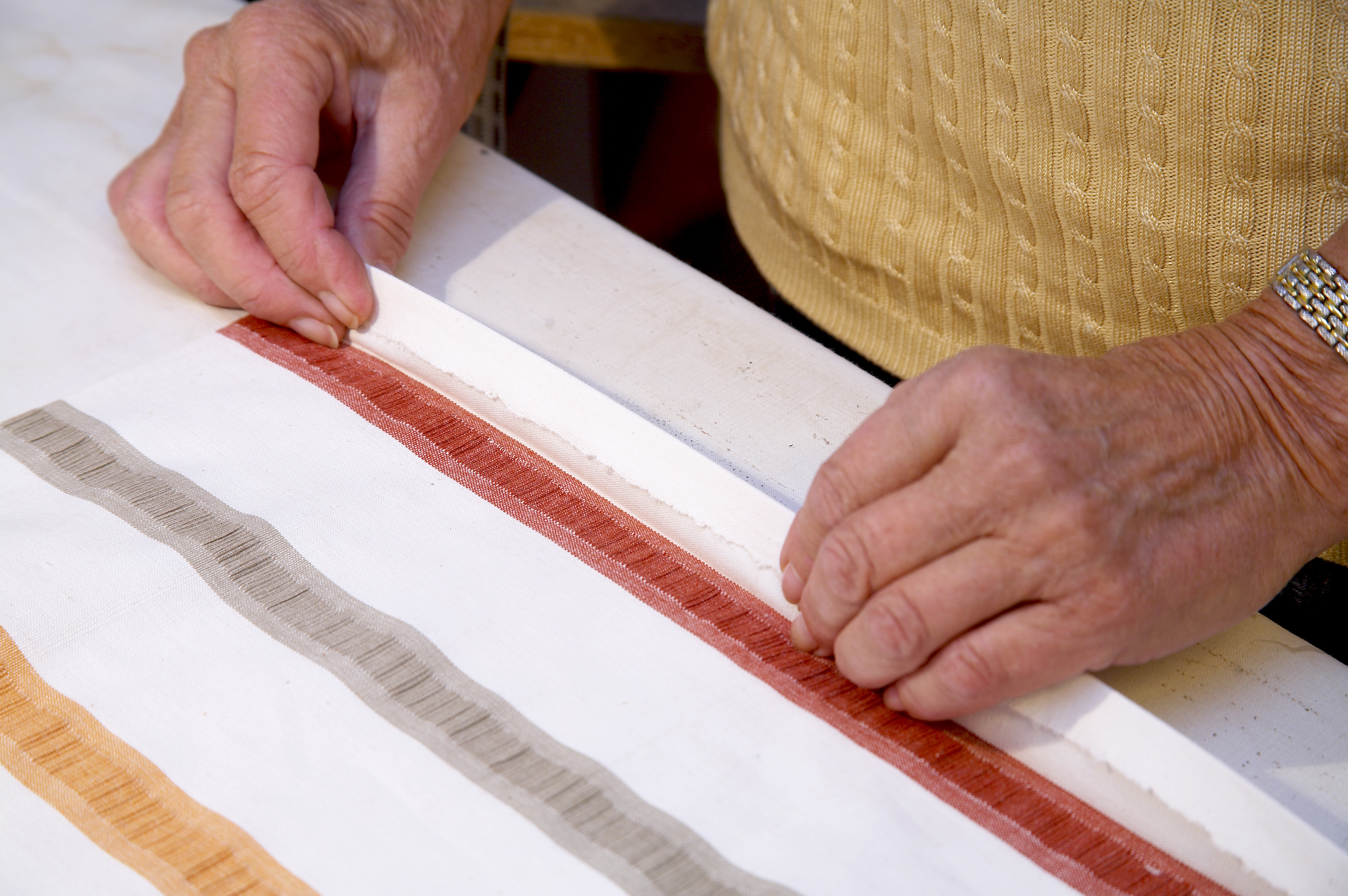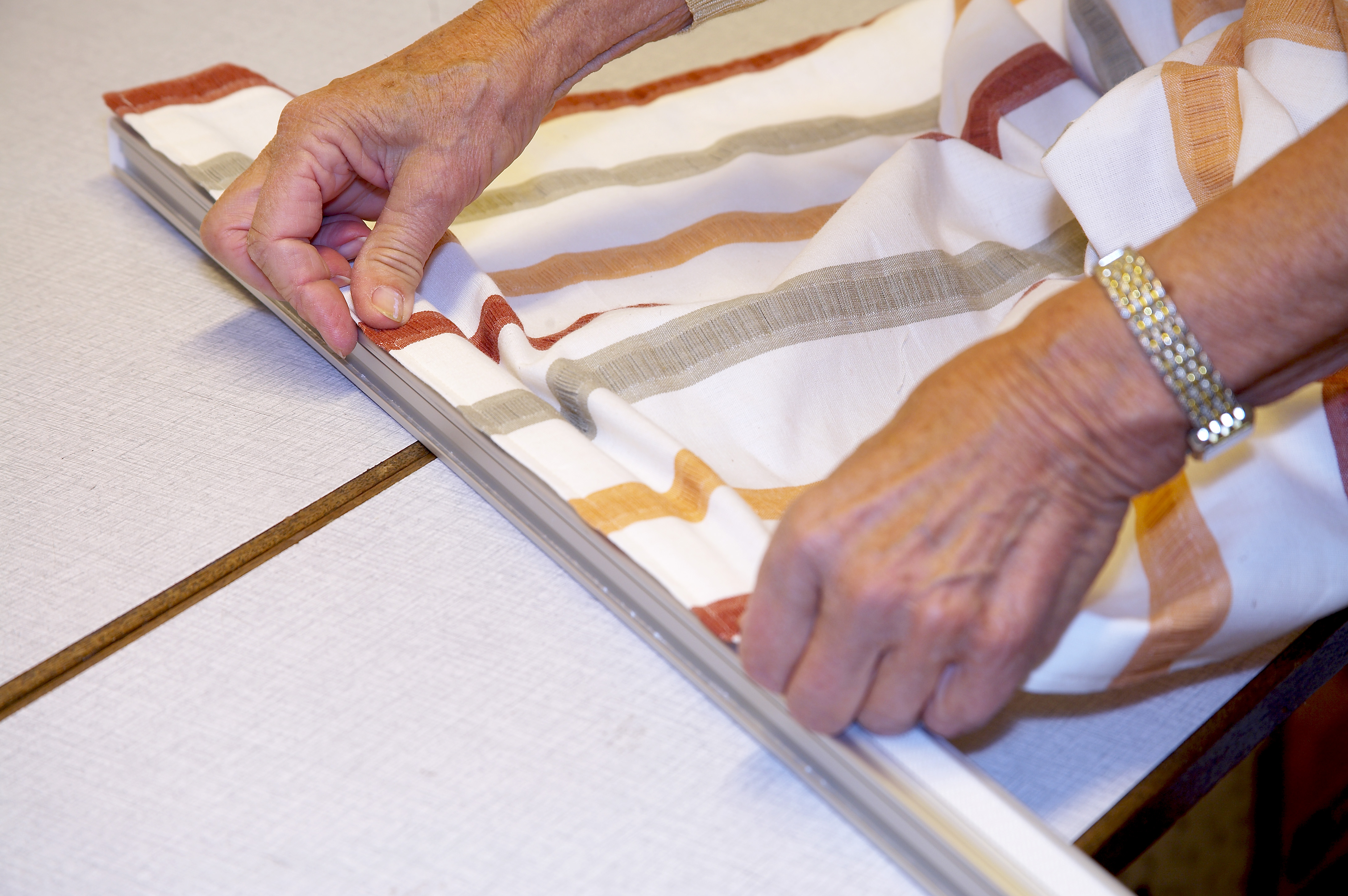- Eventuelle jarekanter klippes av for å forhindre at stoffet strammes ved vask.