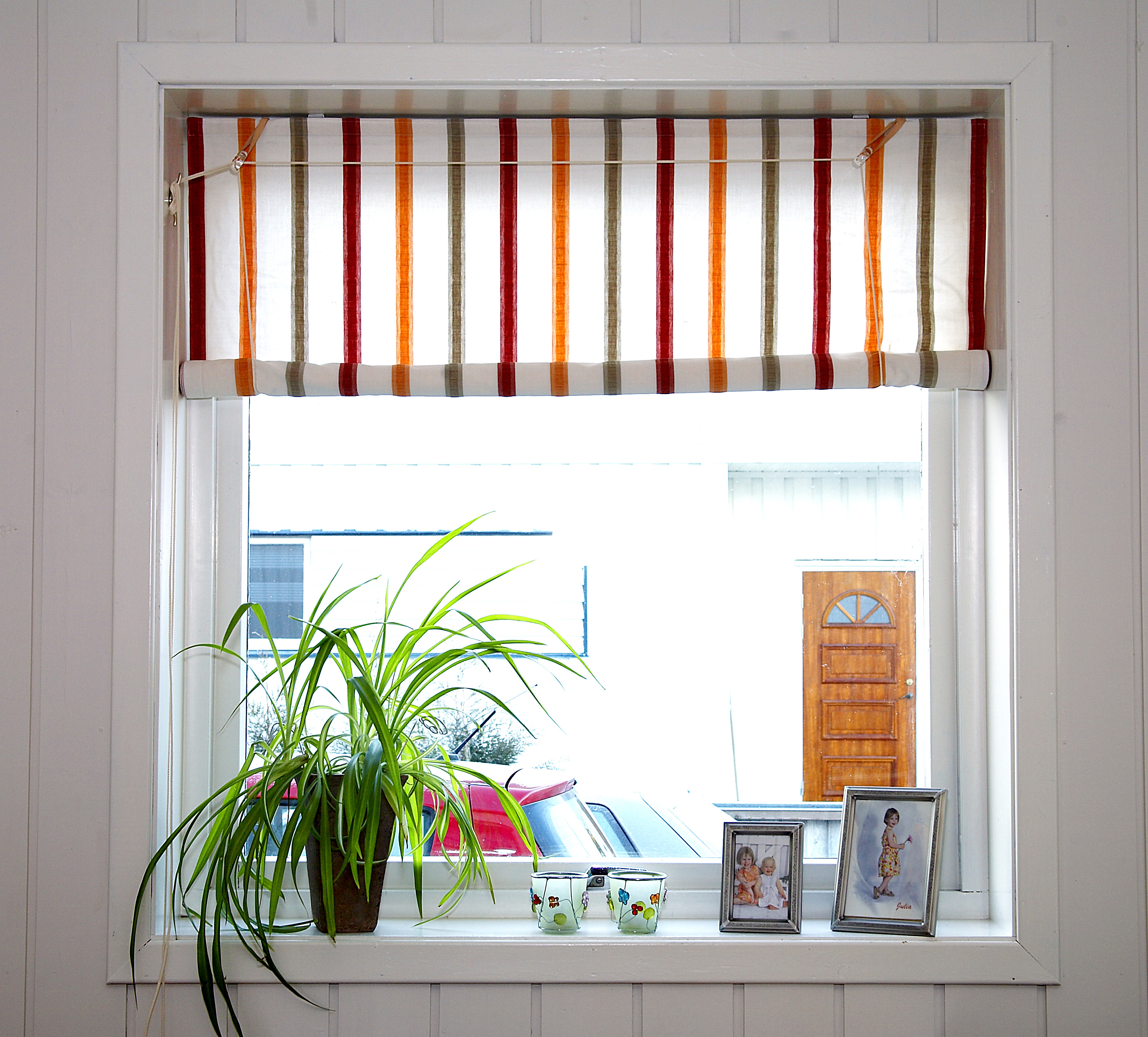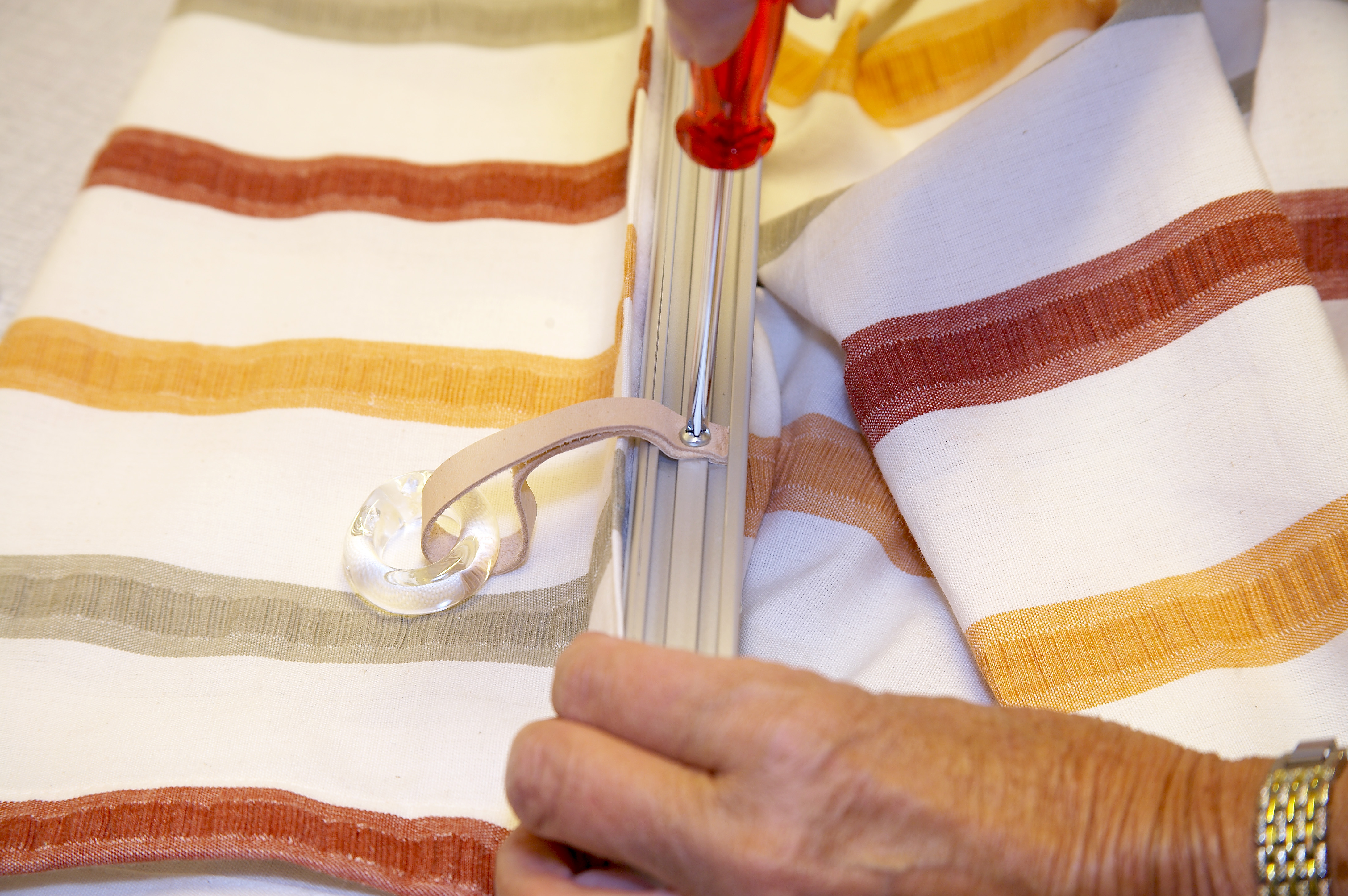5. Fest stoffet til toppskinen ved hjelp av borrelåsen og monter festet for gardinsnoren i ønsket høyde. Rull'n inn...