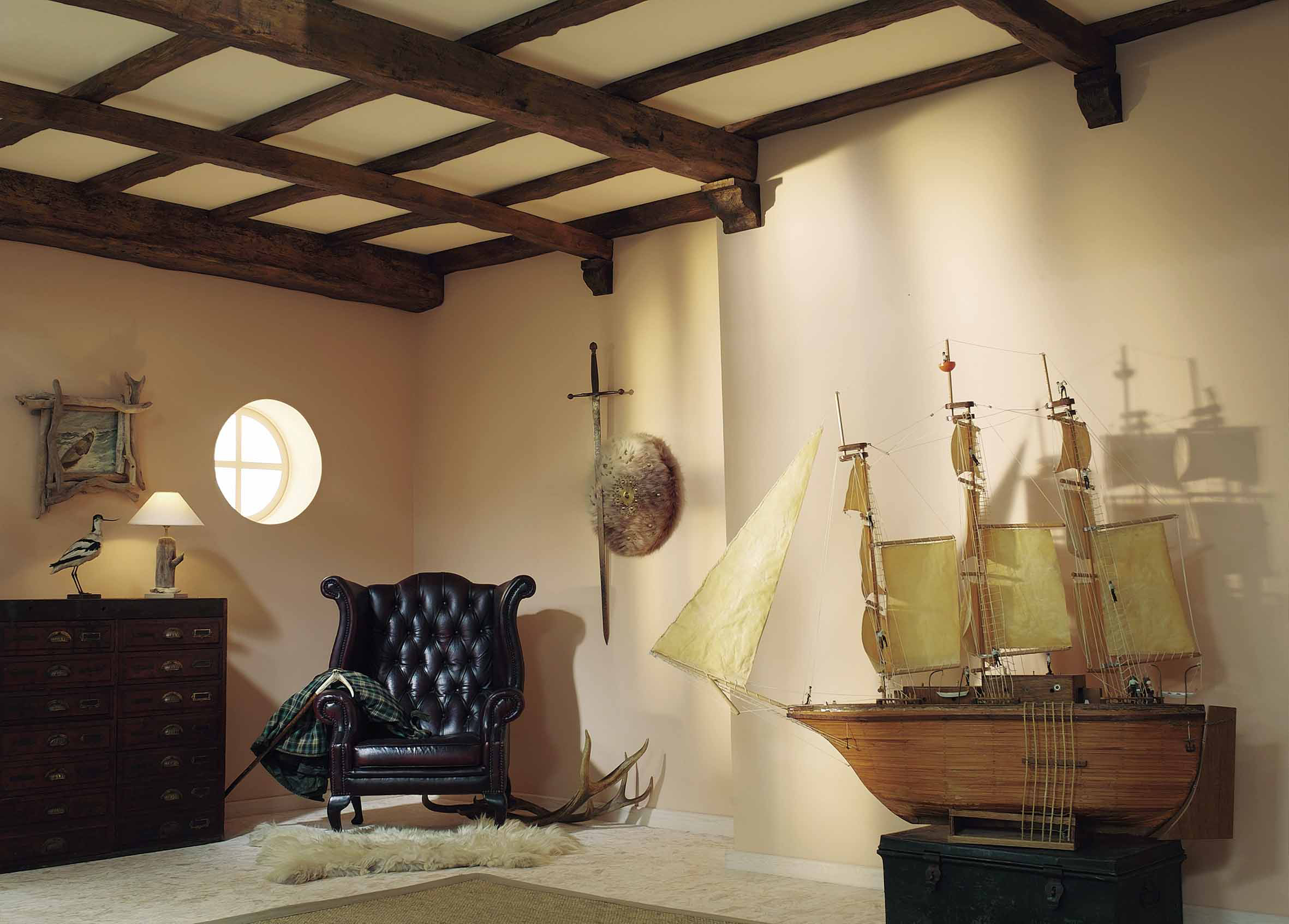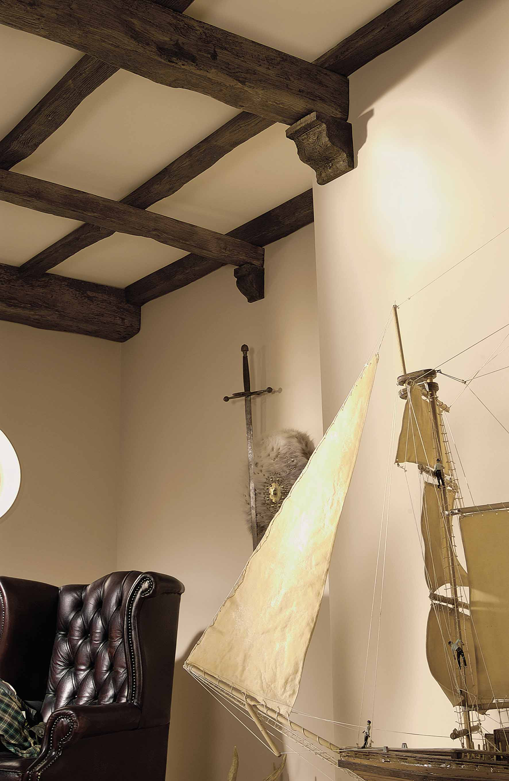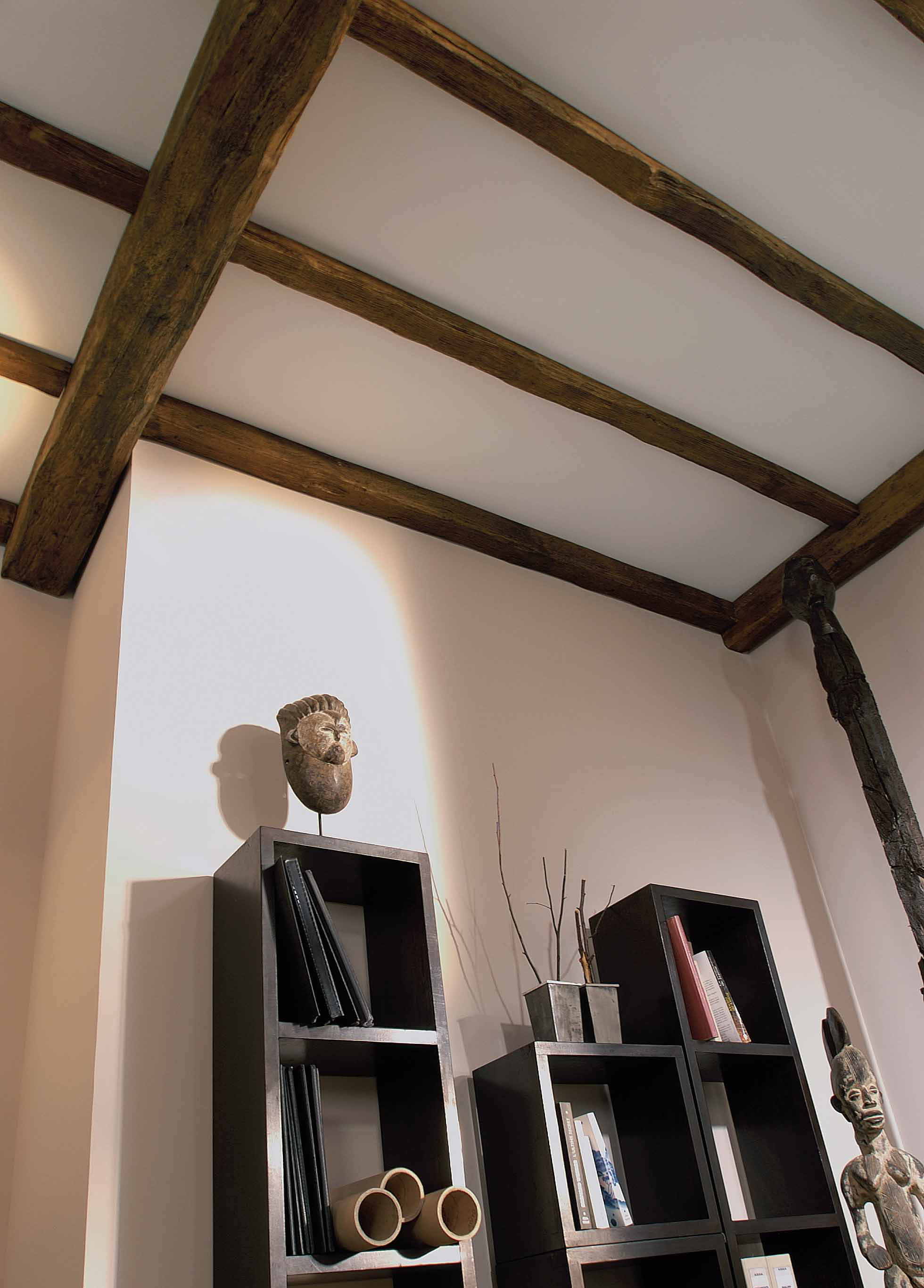 Det er ikke bare av hensyn til dekoren bjelkene er fordelaktige. Siden de er laget av kunstmateriale, er de hule og lette - og passer fint til downlights eller som ledningsskjuler.