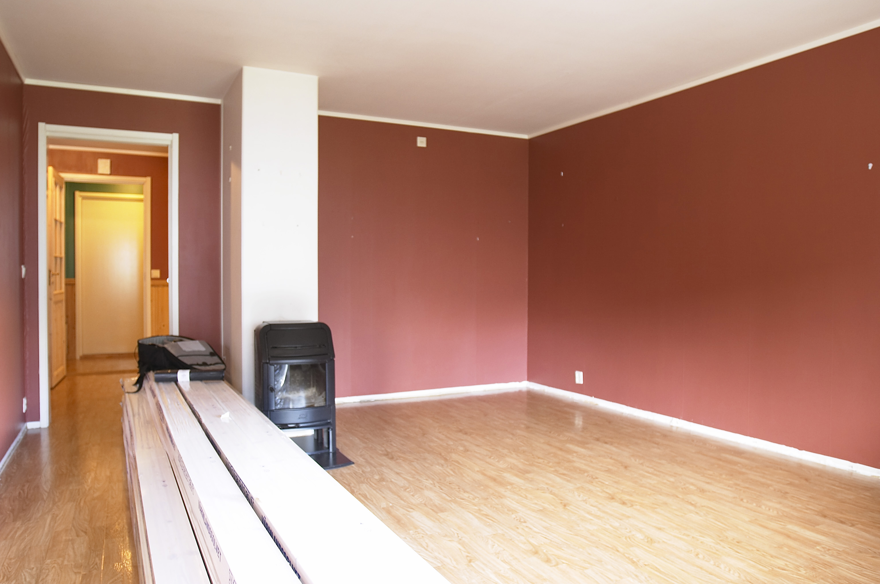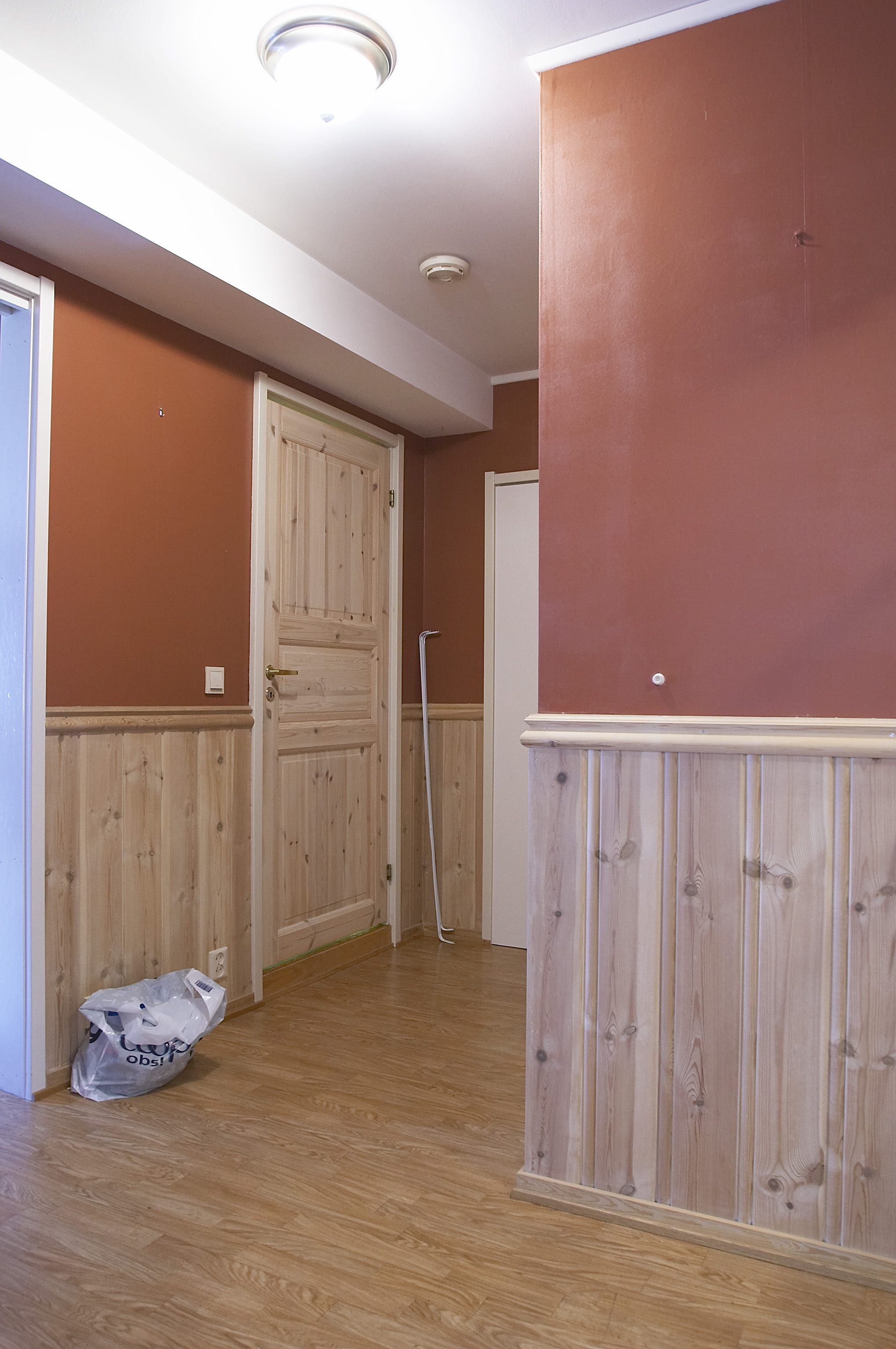 All brystningspanel ble fjernet og de ubehandlede furudørene ble malt hvite. Burgunderrøde, irrgrønne og knallblå vegger ble malt eller tapetsert lyse, og vinylgulvet ble erstattet med et hvitmalt furugulv.