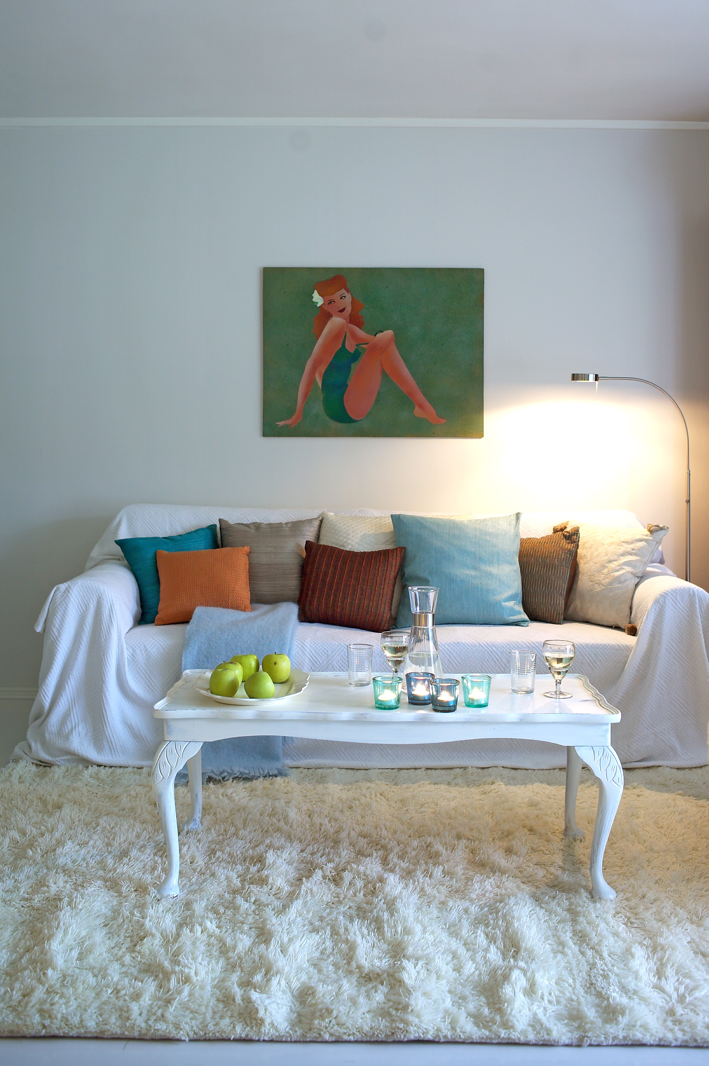 Ifølge interiørarkitekt Turid Wiggen, som var med på å innrede leiligheten, har nordmenn flest en tendens til å velge altfor ruvende møbler. Det fine glassbordet i stuen ble funnet på nettet mens spisestoler og benken ble kjøpt i en bruktbutikk. Alt i alt kostet oppussingen, med malerarbeid, nye tapeter, nytt furugulv som ble malt og nye og brukte møbler i underkant av 30 000 kroner. Behovet for å bytte ut en gammel, mørkeblå sofa ble elegant gjemt og glemt bak et sengeteppe.