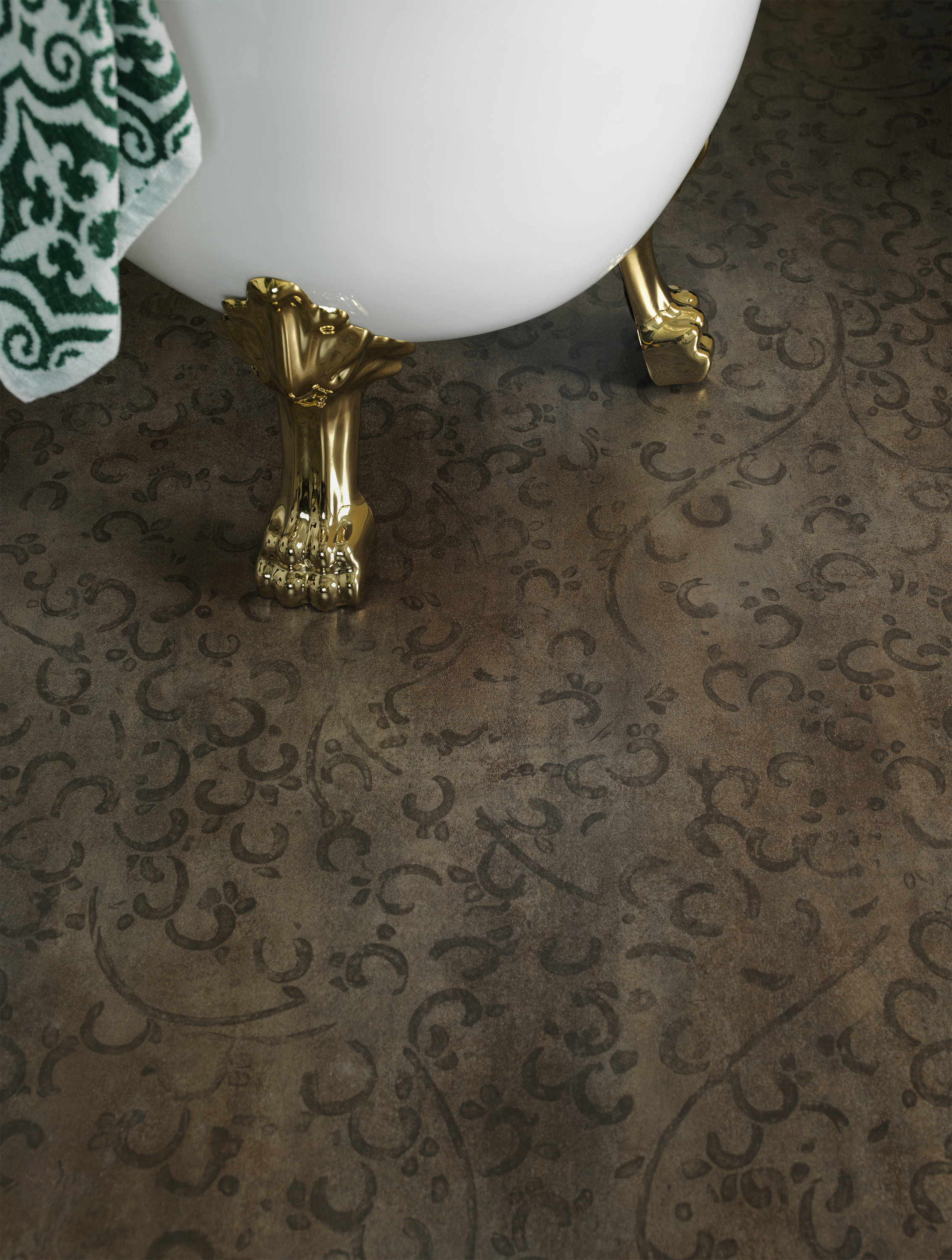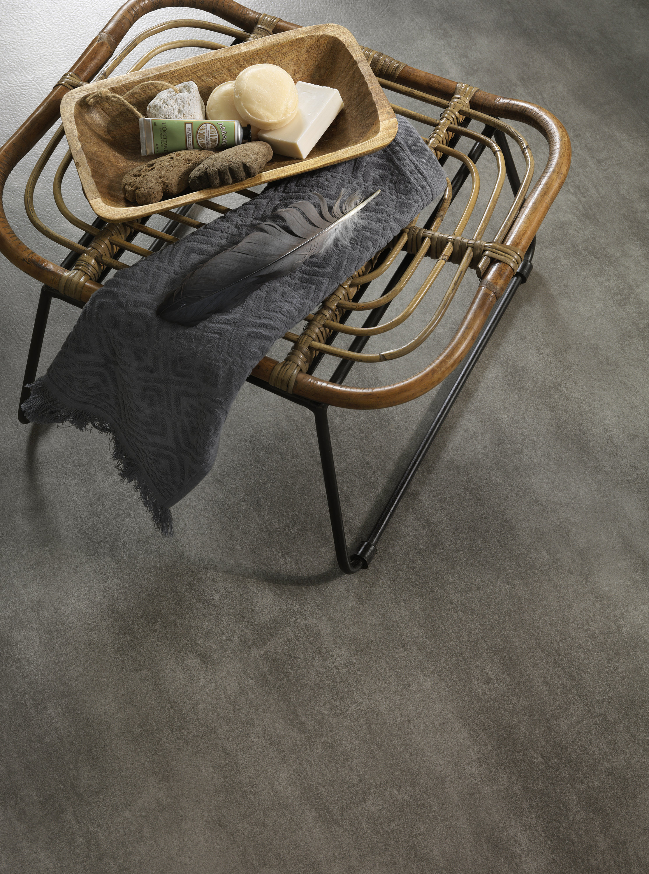 Aquarelle-serien er laget i våtromsvinyl, og fungerer utmerket sammen med gulvvarme. Materialet holder også en temperatur som er behagelig å gå på, selv uten gulvvarme. Gulvbelegget kommer også i brede formater, som gjør det mulig med skjøtefri legging i de fleste baderom. Veggvinylen monteres horisontalt og strekkes rundt rommet istedenfor å settes opp i lengder, som man gjør med tapet. Veggen kompletteres til slutt med en matchende bord mot taket.