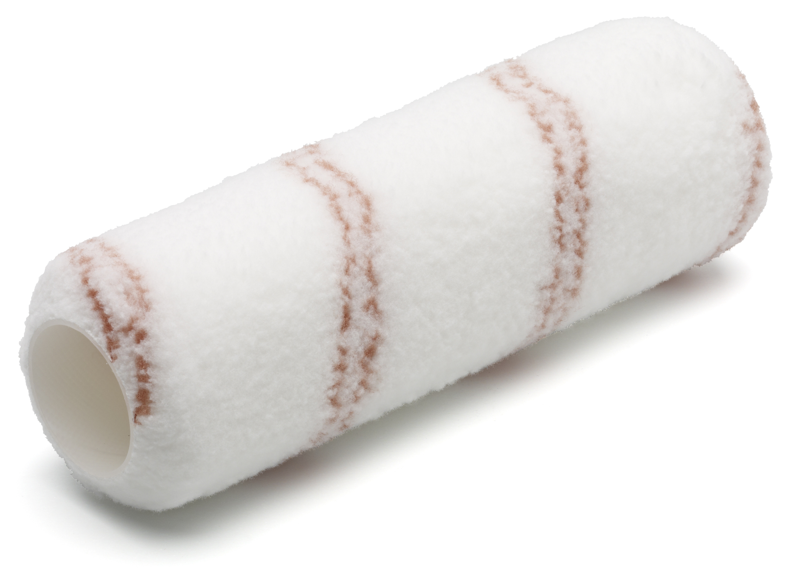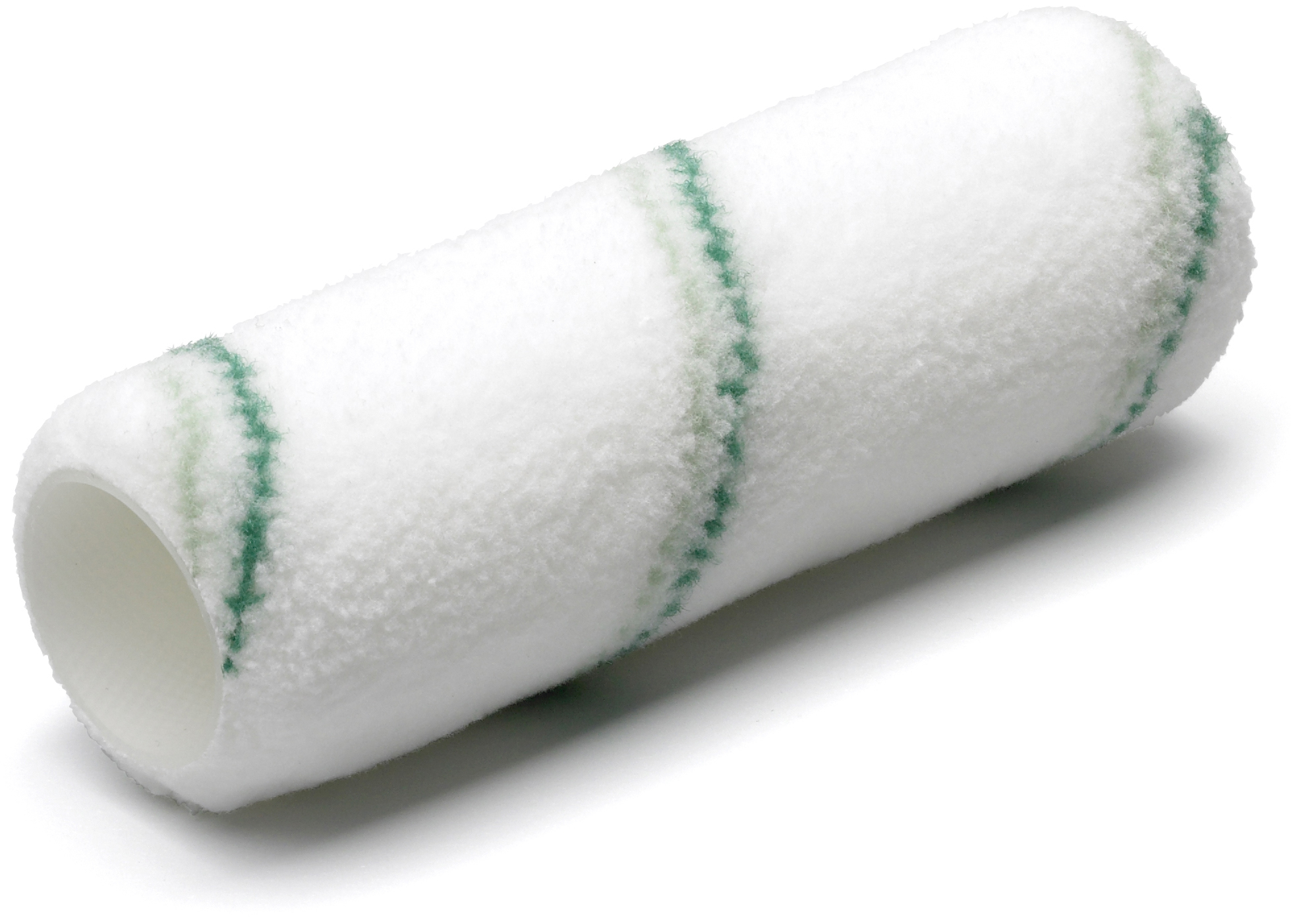 Rullene med hvit basisfarge og en rosa eller grønn stripe, er laget av god, vevet polyesterfiber som feller lite, spruter lite og påfører et godt og jevnt lag.