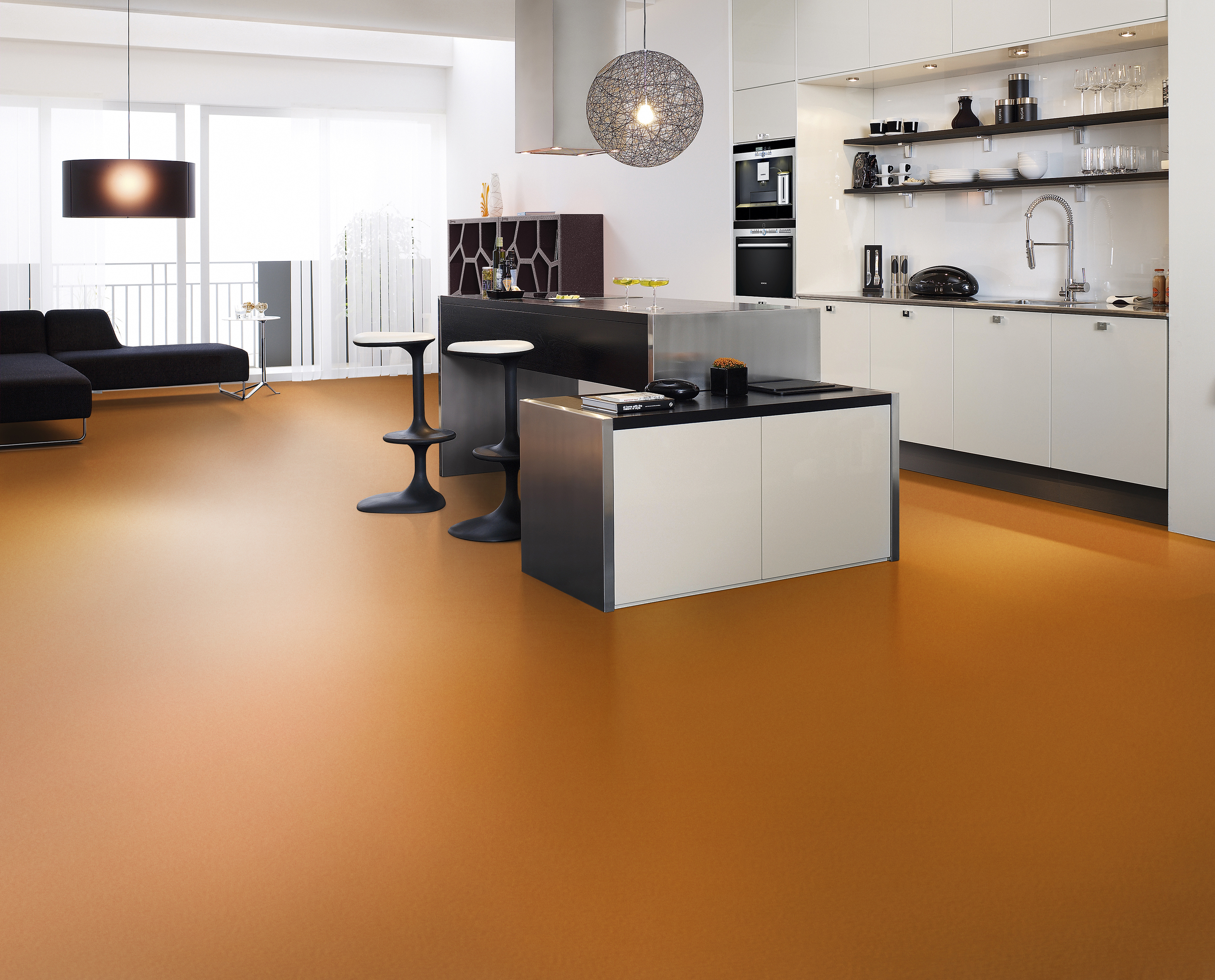 Lekent er selve nøkkelordet her: Tarketts nye ensfargede gulvkolleksjon kommer i elleve sterke og lekne farger: oransje, gul, grønn, rødt, magenta, lilla, samt hvitt, beige, grått, brunt og sort. I tillegg finnes et stort antall mønstrede design – og totalt lages gulvet i hele 36 forskjellige farger eller mønstre.