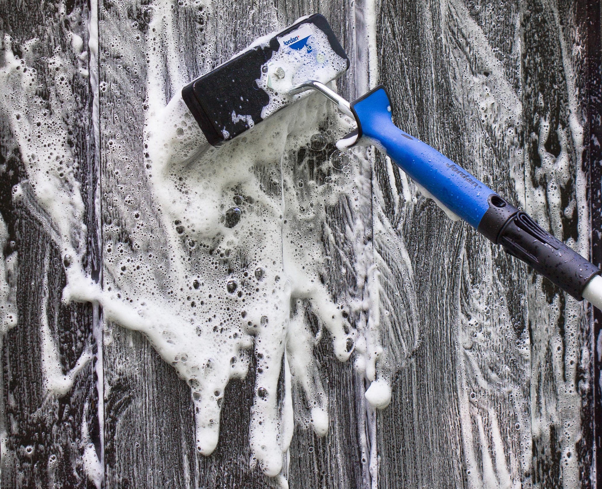 – Nå er det supert å vaske, fordi rengjøringsmidlene ikke tørker inn på veggen. Påfør vaskemiddel i 2-3 meters bredde og la kjemien virke. Følg med på hvor lenge middelet kan sitte før det tørker. Er det veldig skittent, kan du faktisk spraye på vedlikeholdsvasken og la det stå en hel uke før du vasker, sier han.