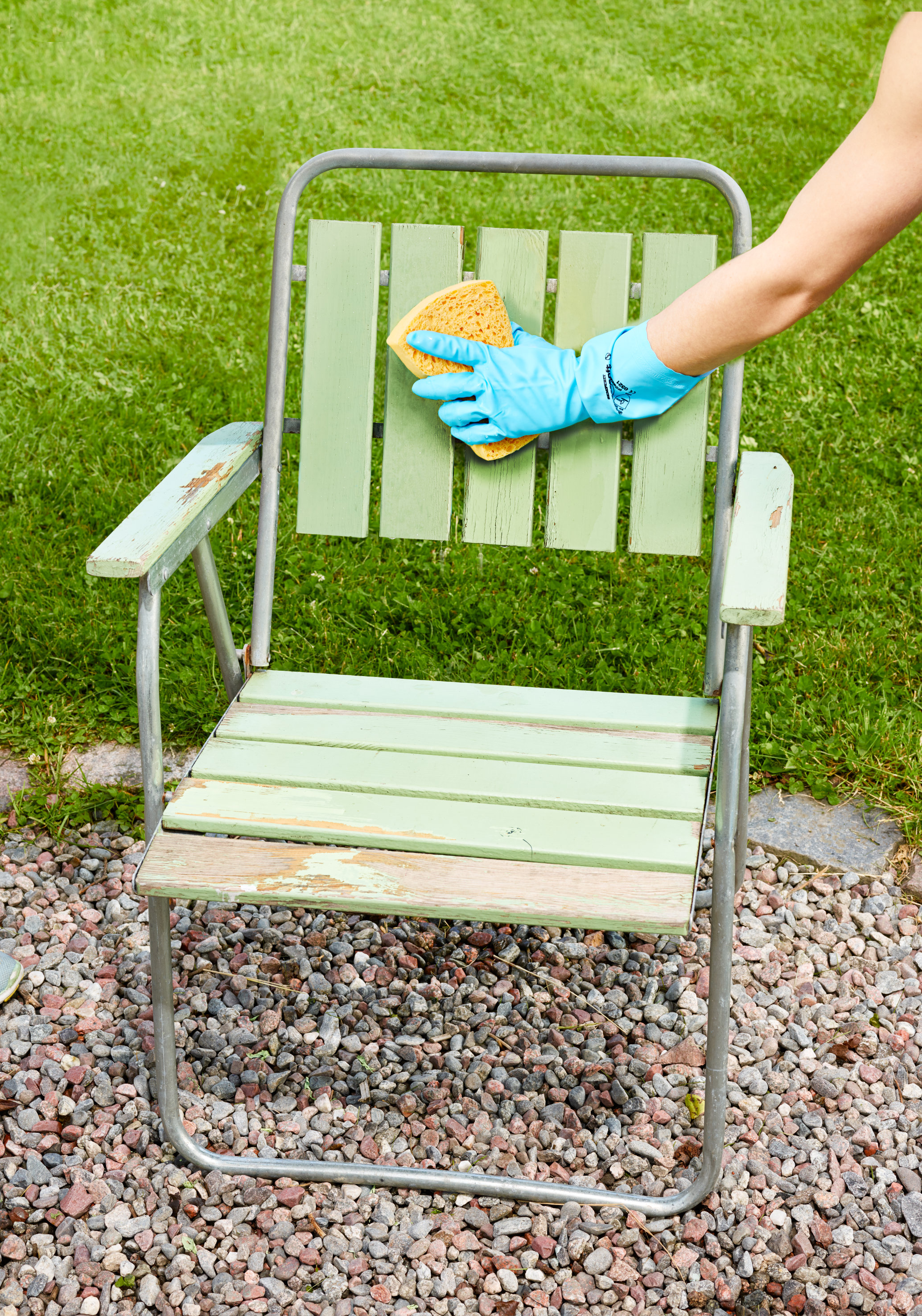 – Fellesnevneren for all holdbar behandling av møbler er å se over flatene jevnlig og flekkmale der det er behov. Armlener, krakker, sits og andre liggende flater der vann kan bli stående etter et regnskylll er ekstra utsatt for slitasje. Her er det viktig at det ikke er gått hull i overflatebehandlingen slik at vann kan trenge inn, sier Per Myhre.