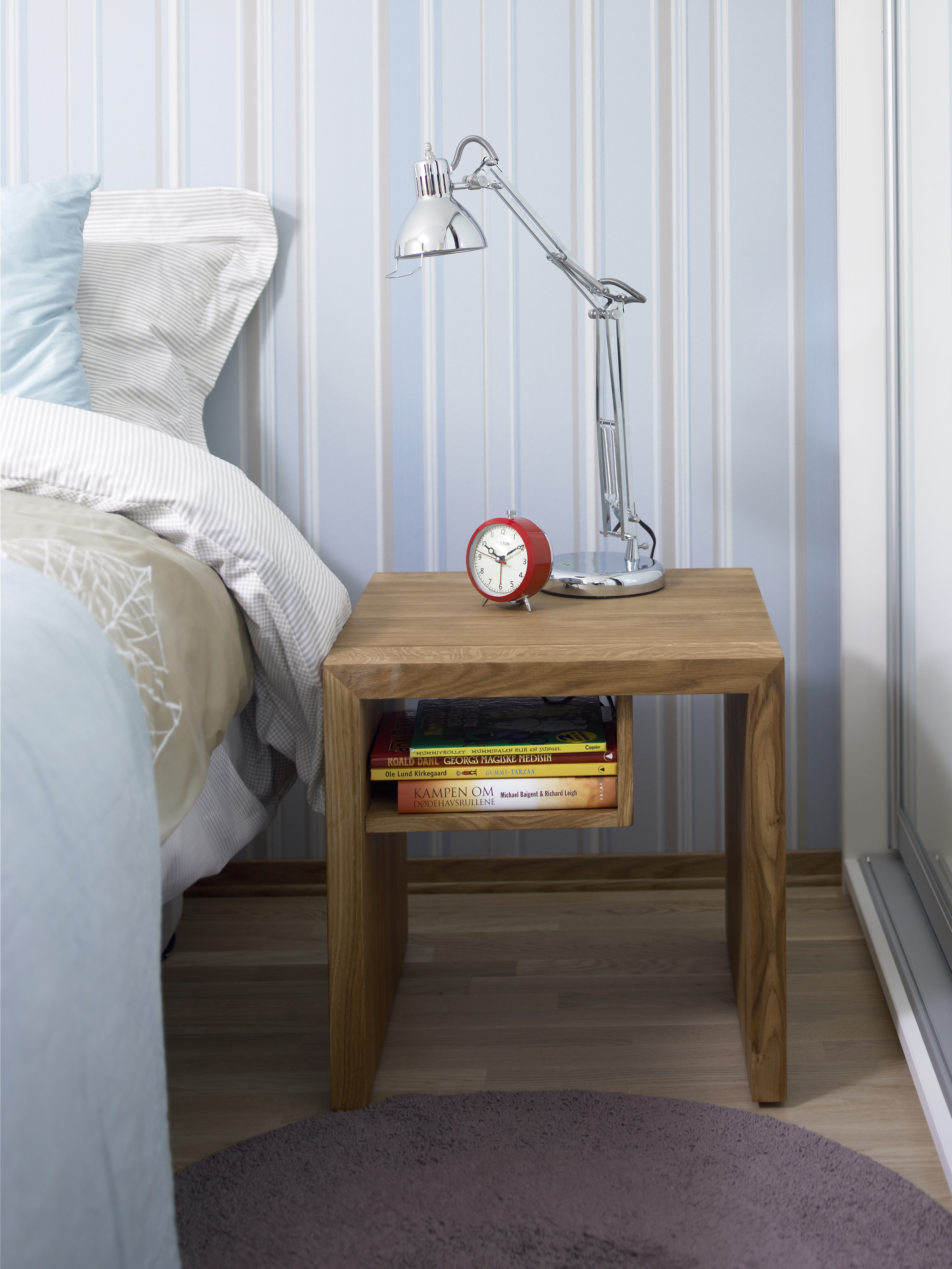 - Barnerommet kommer sikkert til å forandre seg flere ganger opp gjennom småbarnstid og skoletid, sier interiørarkitekten. Derfor er det smart å investere i få, men gode ting som kan leve med lenge. En høy seng med oppbevaring under gir best mulig utnyttelse av den begrensede gulvplassen.