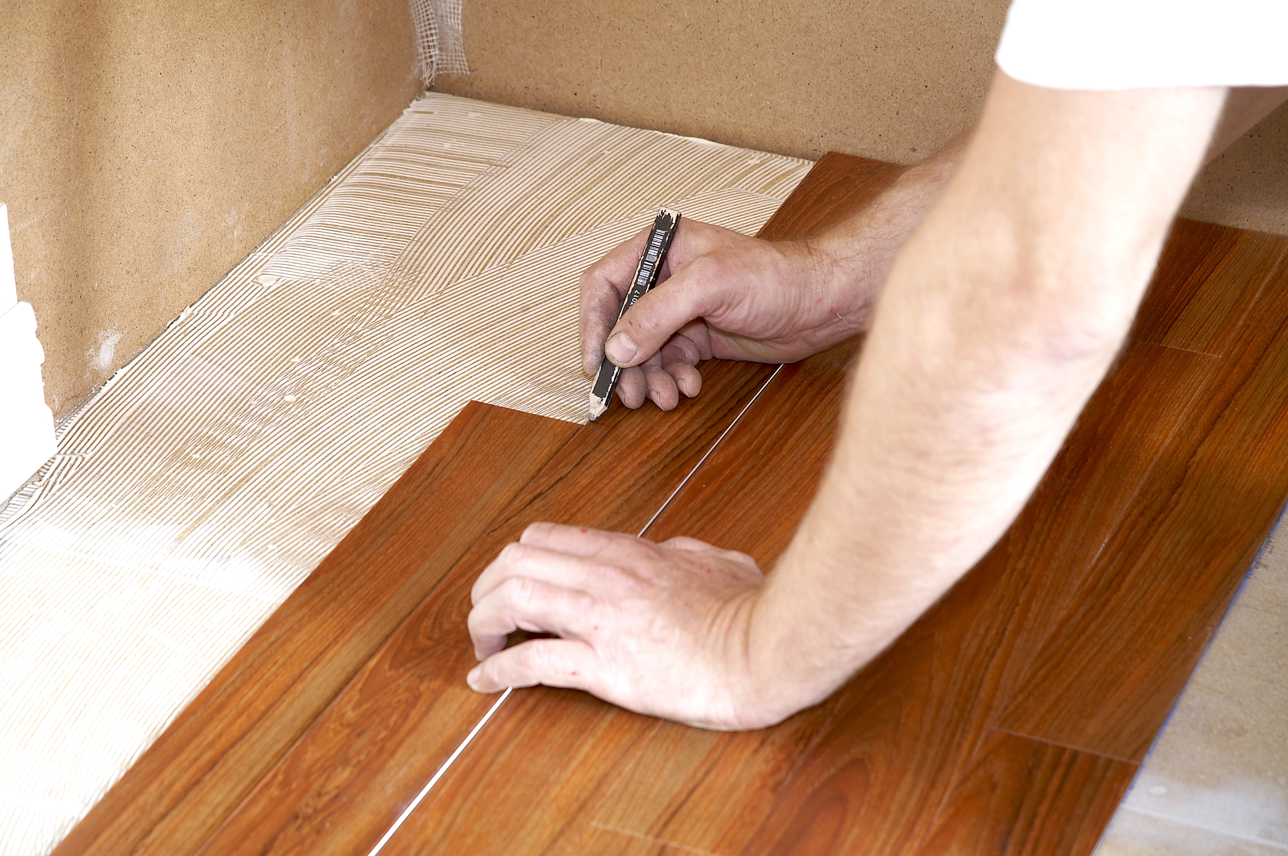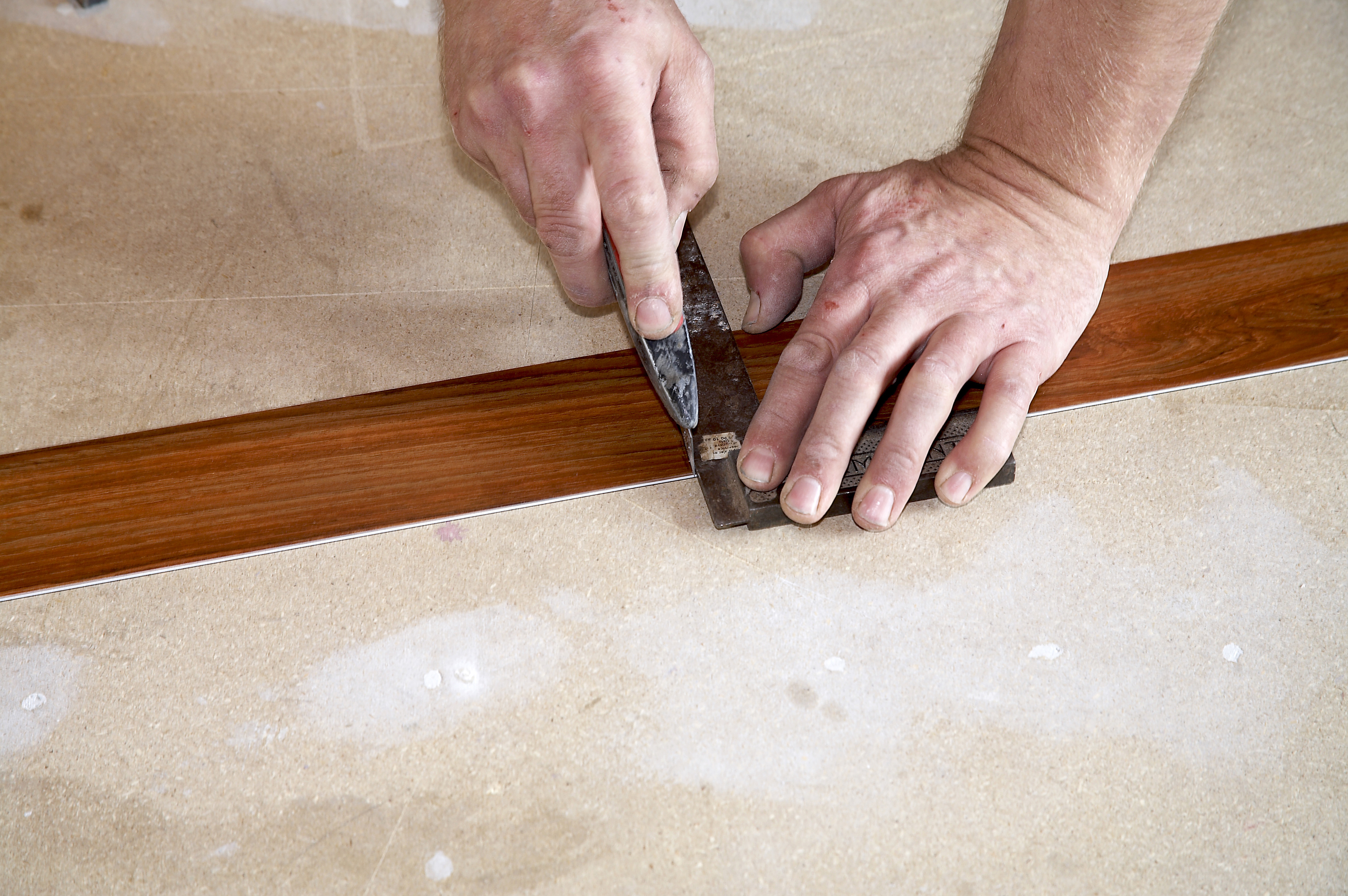 Du skal være svært heldig dersom siste stav passer perfekt mot veggen, så du bør nok belage deg på å kutte til de siste stavene. Husk at det skal være ca. 2 mm avstand fra vegg til vinyl.