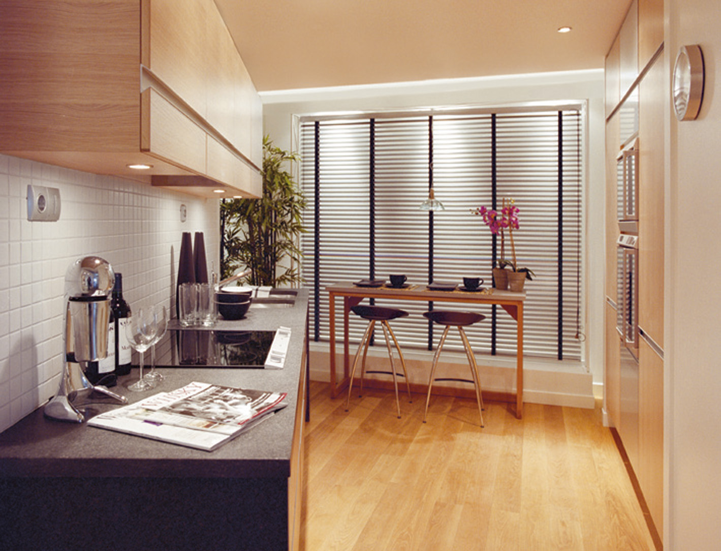 Kun det beste er godt nok - også når det gjelder leilighetenes standard. Stefan Bergkvist i Samark Arkitektur kan fortelle at gulvene i hovedsak får oljet eik i massivt tre. Unntaket er entreen der det legges kalkstein fra Jämtland. Veggene i oppholdsrommene males mens det på kjøkkenet også blir en del flisbelagte flater. Dels er det 5x5 cm fliser fra Marazzi og store 60x60 cm fliser fra Buchtal. Avhengig av kjøkkenstandard finner man innredning i blank laminat eller hvitlasert eik, begge med aluminiumsdetaljer.
