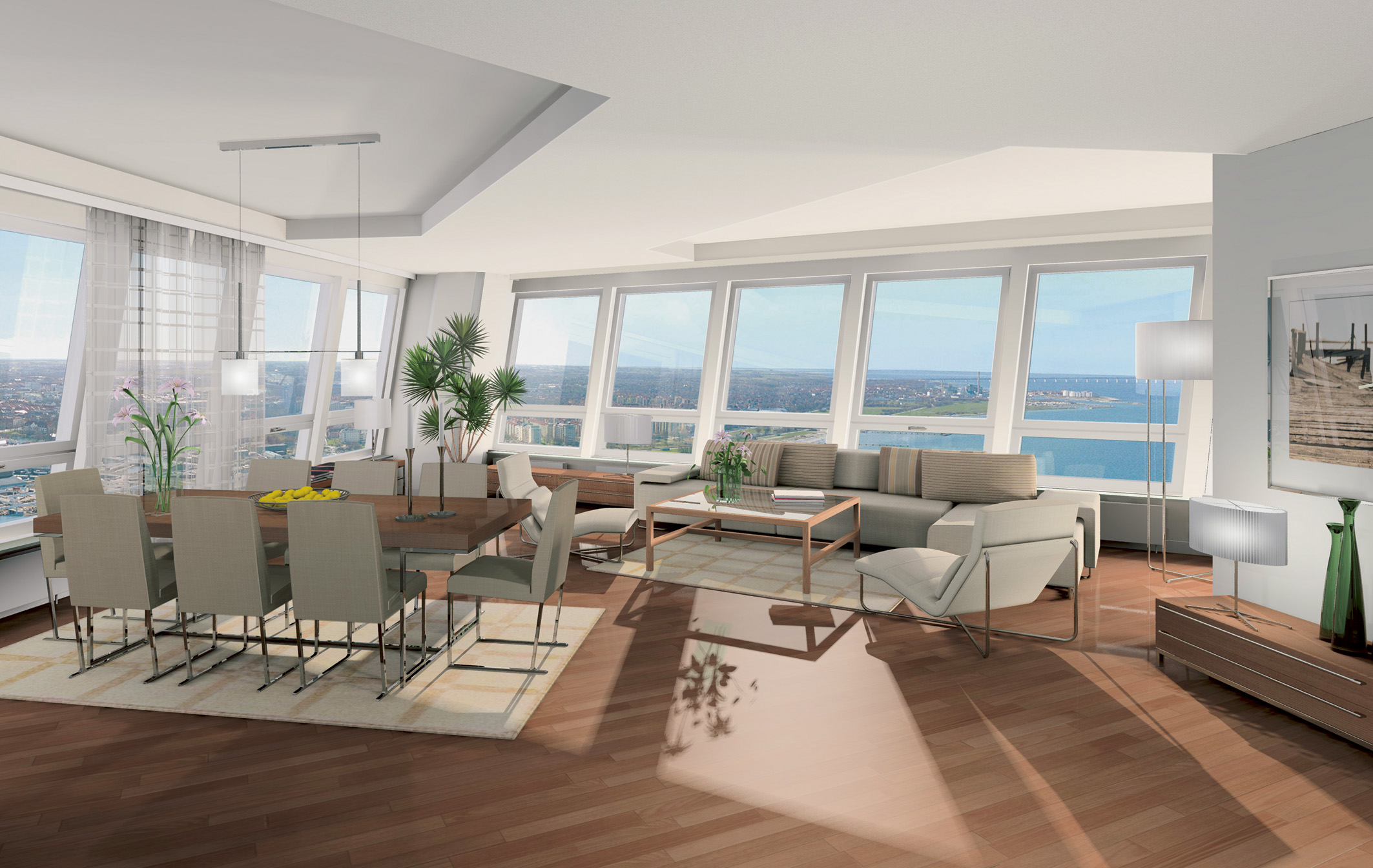 For denne prisen får man ikke bare en leilighet, men tilgang til en rekke fasiliteter samt personlig service. Store utsiktsrom med plass til 20 personer ligger i 43. og 49. etasje. Bygningen har også en etasje med festlokale til 50 sittende personer - og tre overnattingsrom med dusj og wc er tilgjengelig om man skulle ha bruk for ekstra sengeplasser. Turning Torso har i tillegg egen vinkjeller der du kan få oppbevart dine årgangsviner, dessuten badstuer og trimsenter.